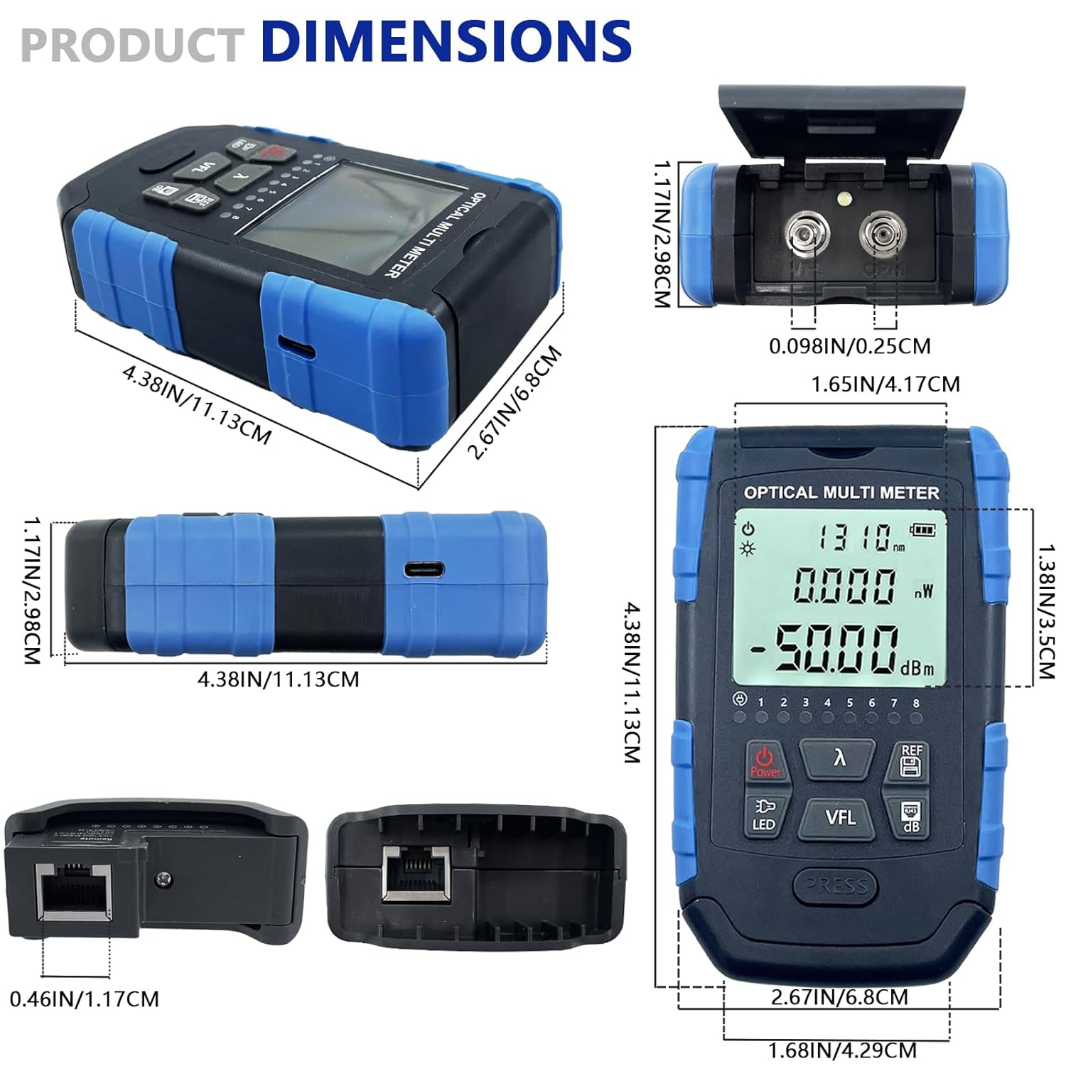 - 【User-Friendly Design】OPM & VFL, support FC/SC/ST support RJ45 test, support simultaneous display of linear and non-linear index dBm, led light for night operation, and English instruction manual are also included.