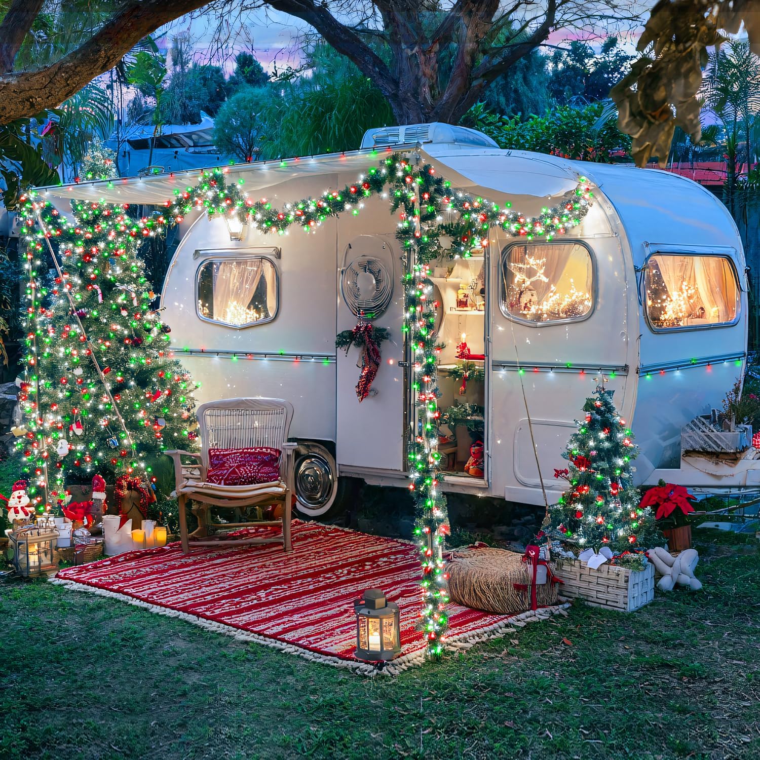 - 【8 Modes & Memory Function】Our red white and green christmas lights have 8 lighting modes(combination, in a wave, sequential, slo glo, chasing/flash, slow fade, twinkle/flash, and steady on). A built-in memory chip saves your last mode setting without having to reset the mode every day.