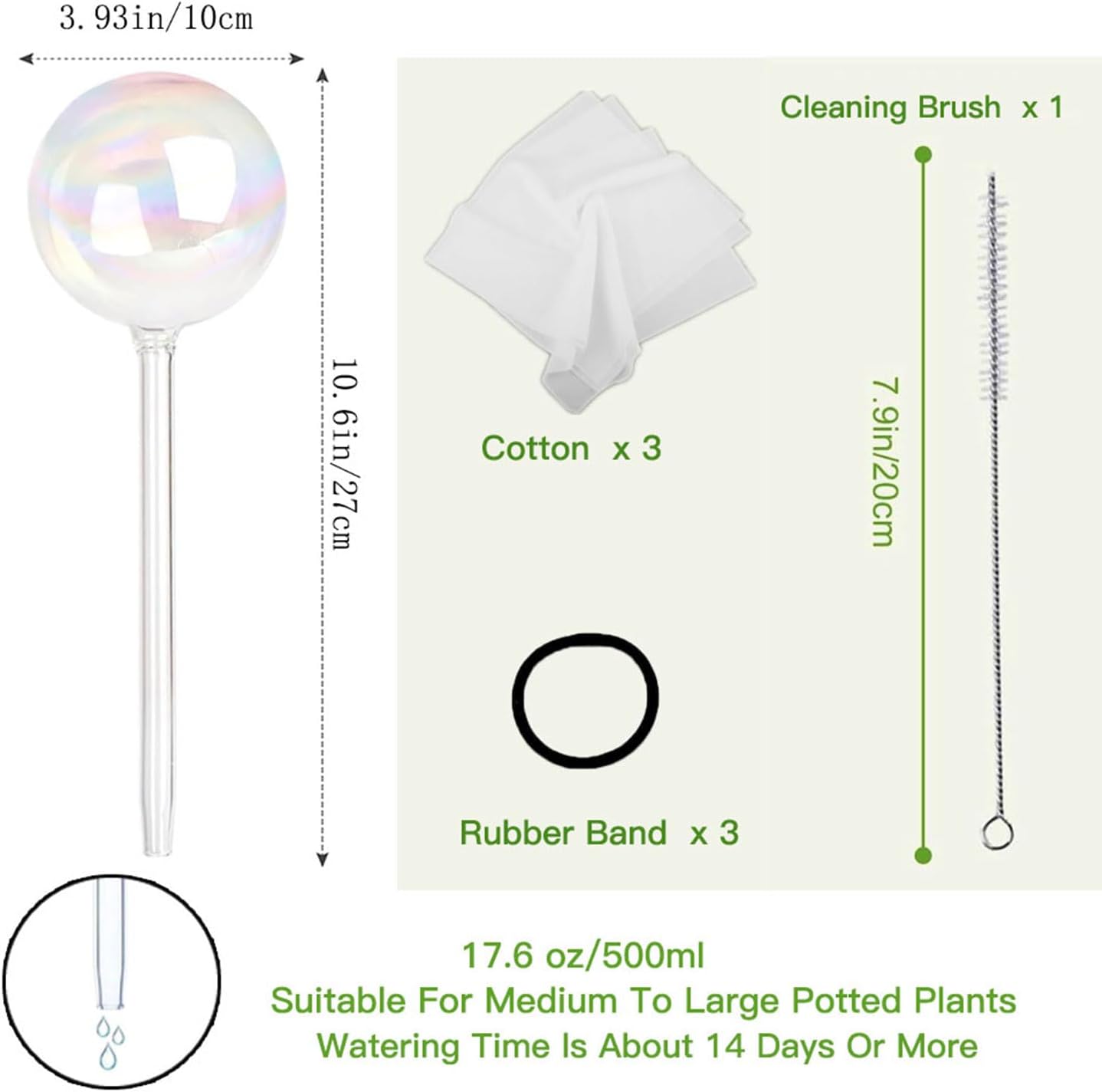 - Versatile Use: Whether you're traveling, on a business trip, prone to forgetting to water your plants, or simply have a busy schedule, our plant watering globes are the perfect solution. Keep your plants healthy and flourishing with minimal effort.