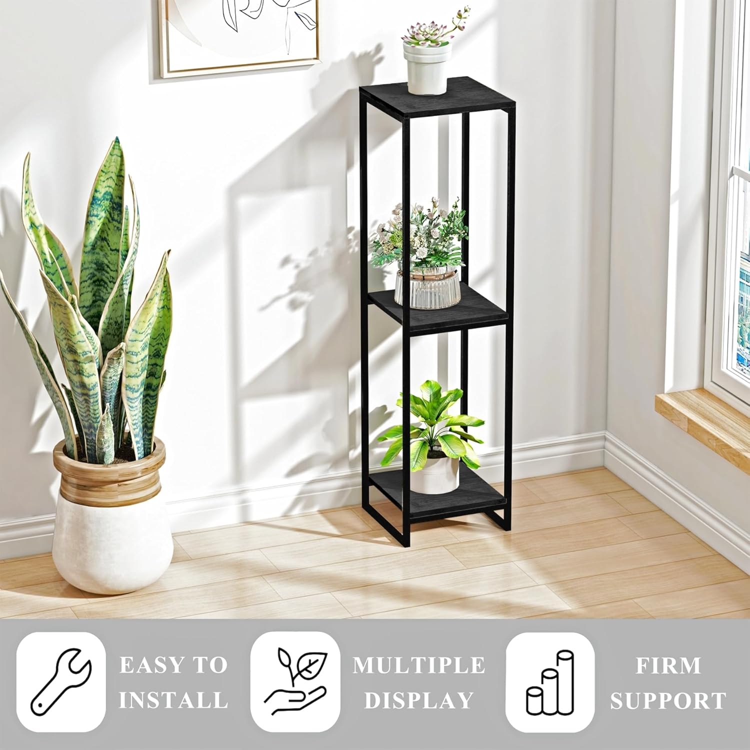 46" Tall Plant Stand Indoor, 3-Tier Modern Plant Shelf, Corner Flower Pot Holder Organizer for Living Room Balcony Patio Garden (Black)