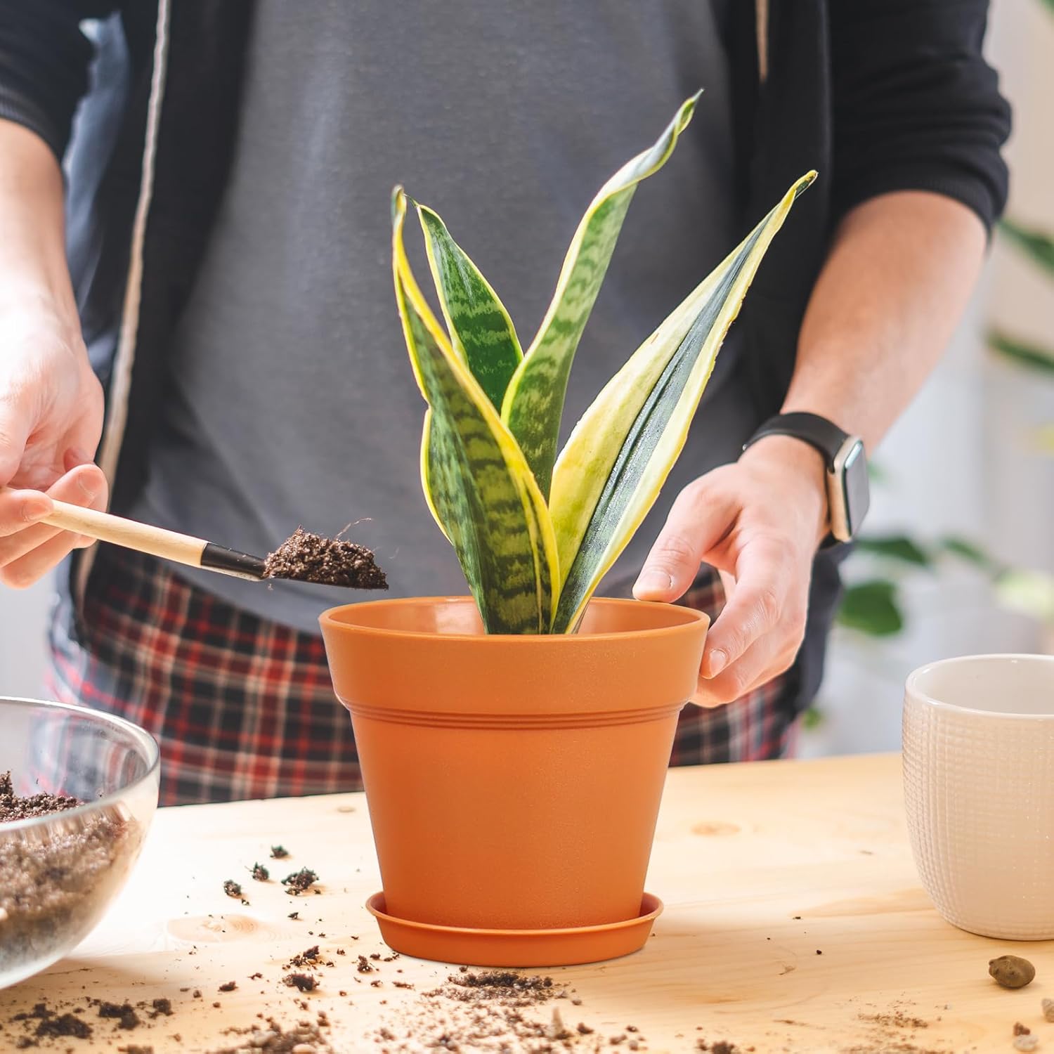 - 【Drainage Holes and Trays】Each plant pot features well-designed drainage holes at the bottom to ensure proper water flow. Additionally, saucers catch excess water, keeping your growing area clean and tidy while also ensuring that your plants remain hydrated without becoming waterlogged.