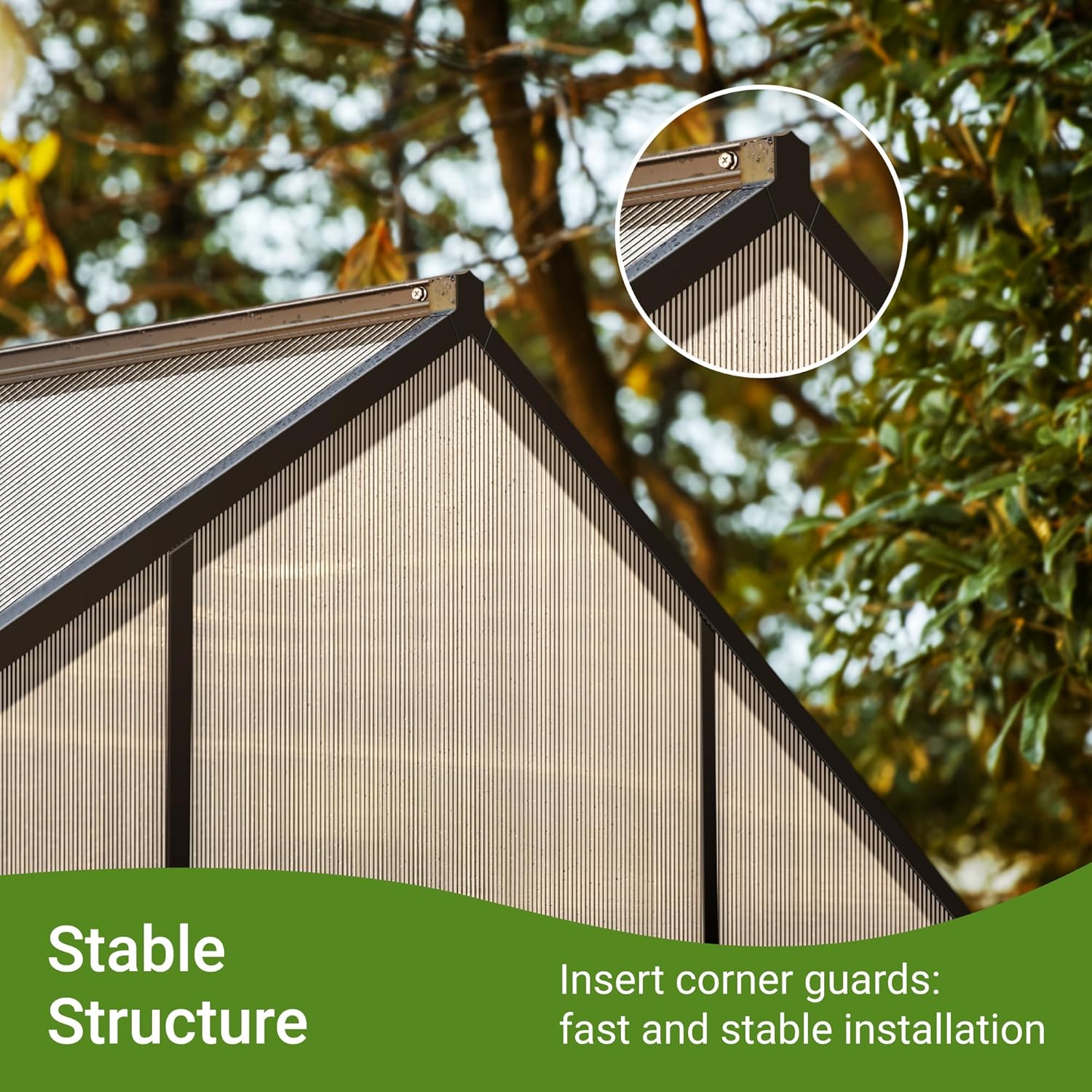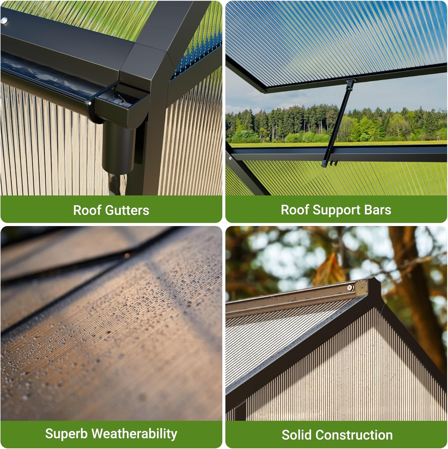 - 【Resistant and Sturdy】The 720g polycarbonate greenhouse features an upgraded aluminum frame for structural stability to withstand storms. It offers protection during a year-long cultivation of plants.