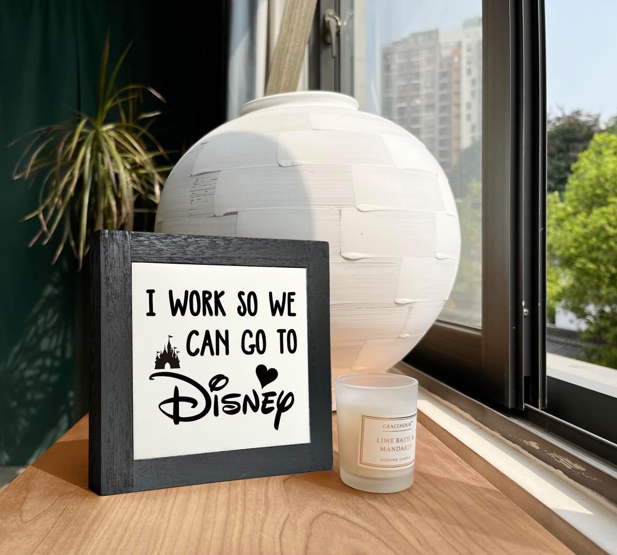 Inspirational Wood Signs, Box Wood Plaques Desk Décor, Decorative Plaques and Signs, Rustic Office Decor Art, Motivational Office Desk Decor, Farmhouse Home Decoration, I Work So We Can Go to F