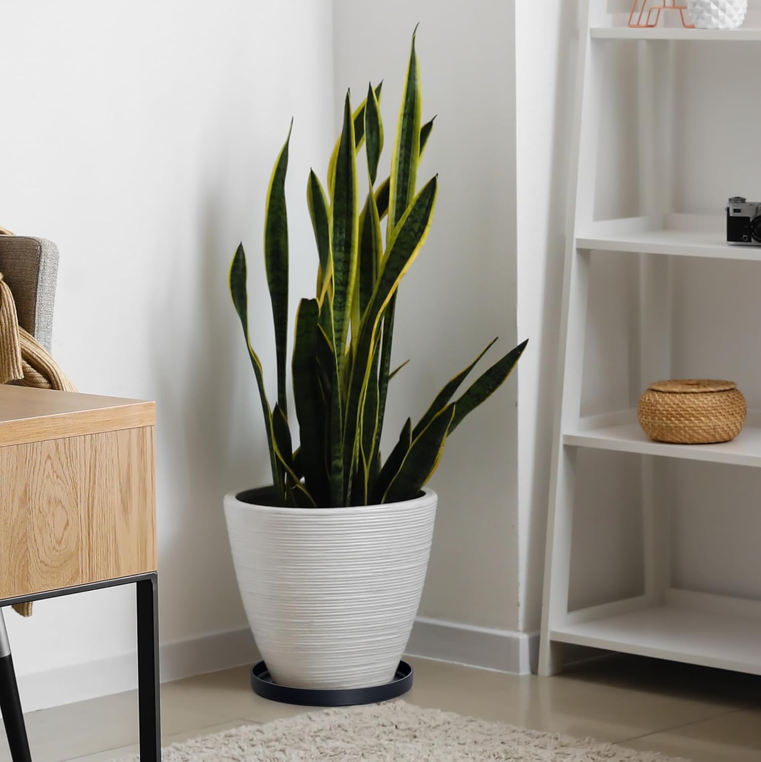 Phoenix Vine 12 Inch Plastic Plant Saucer Water Drip Tray, Heavy Sturdy Round Plant Drainage Tray for Indoors Outdoor, Matte Black, 21-TY-12B-1
