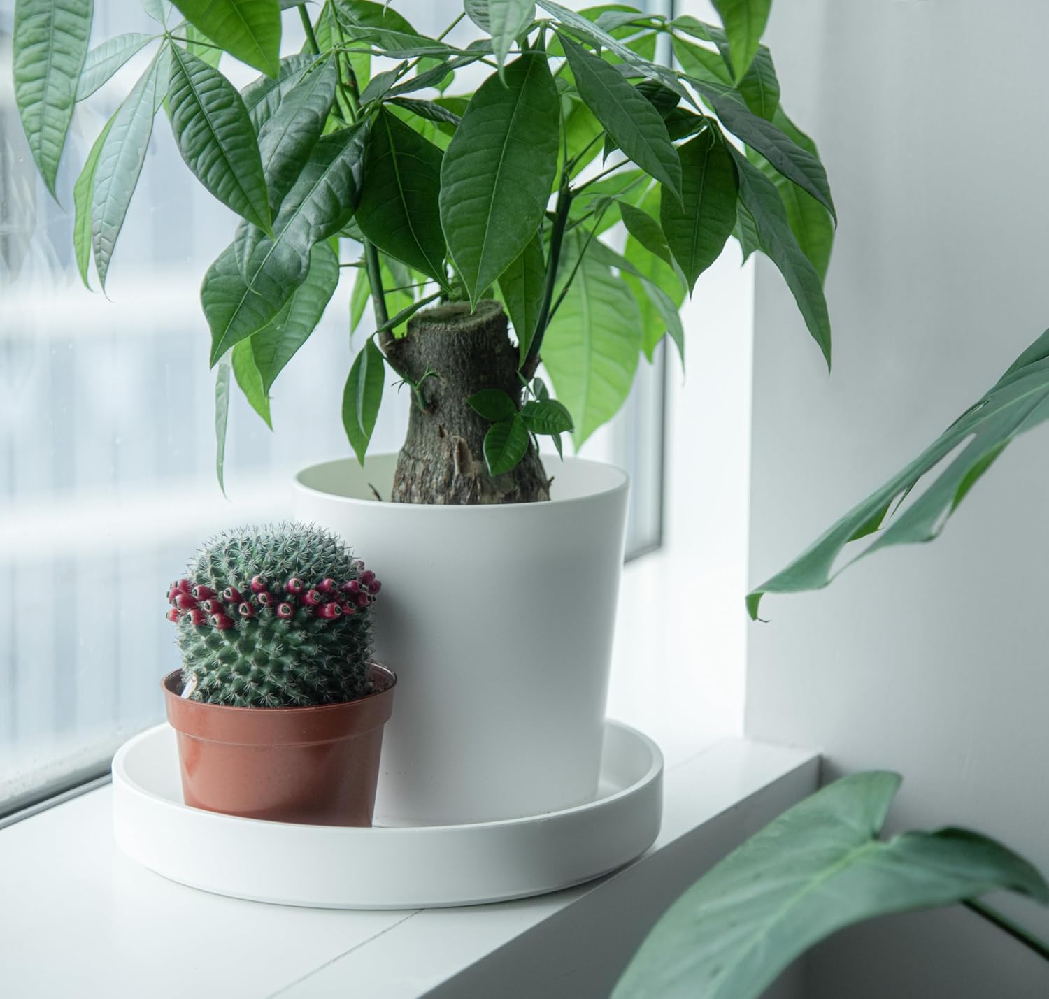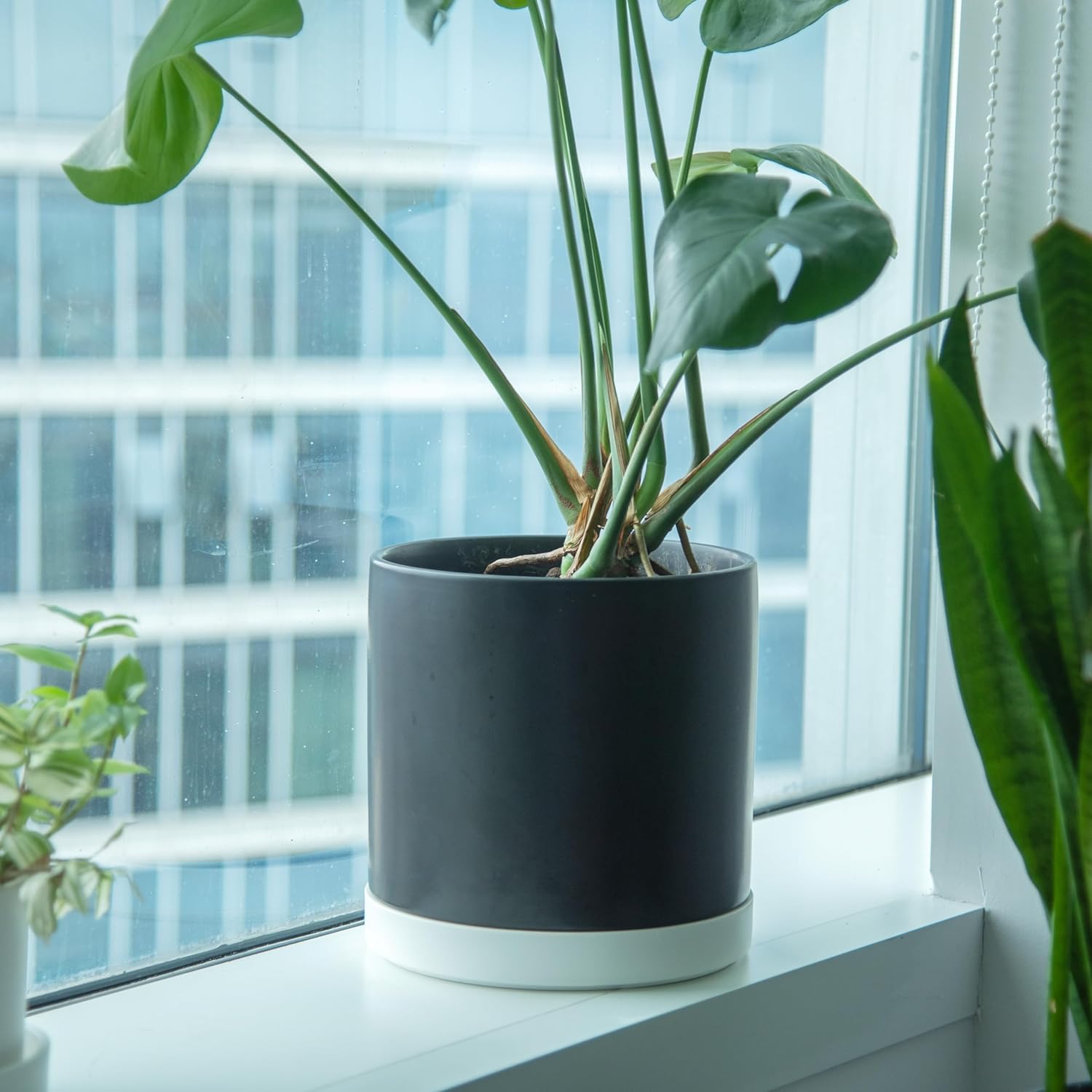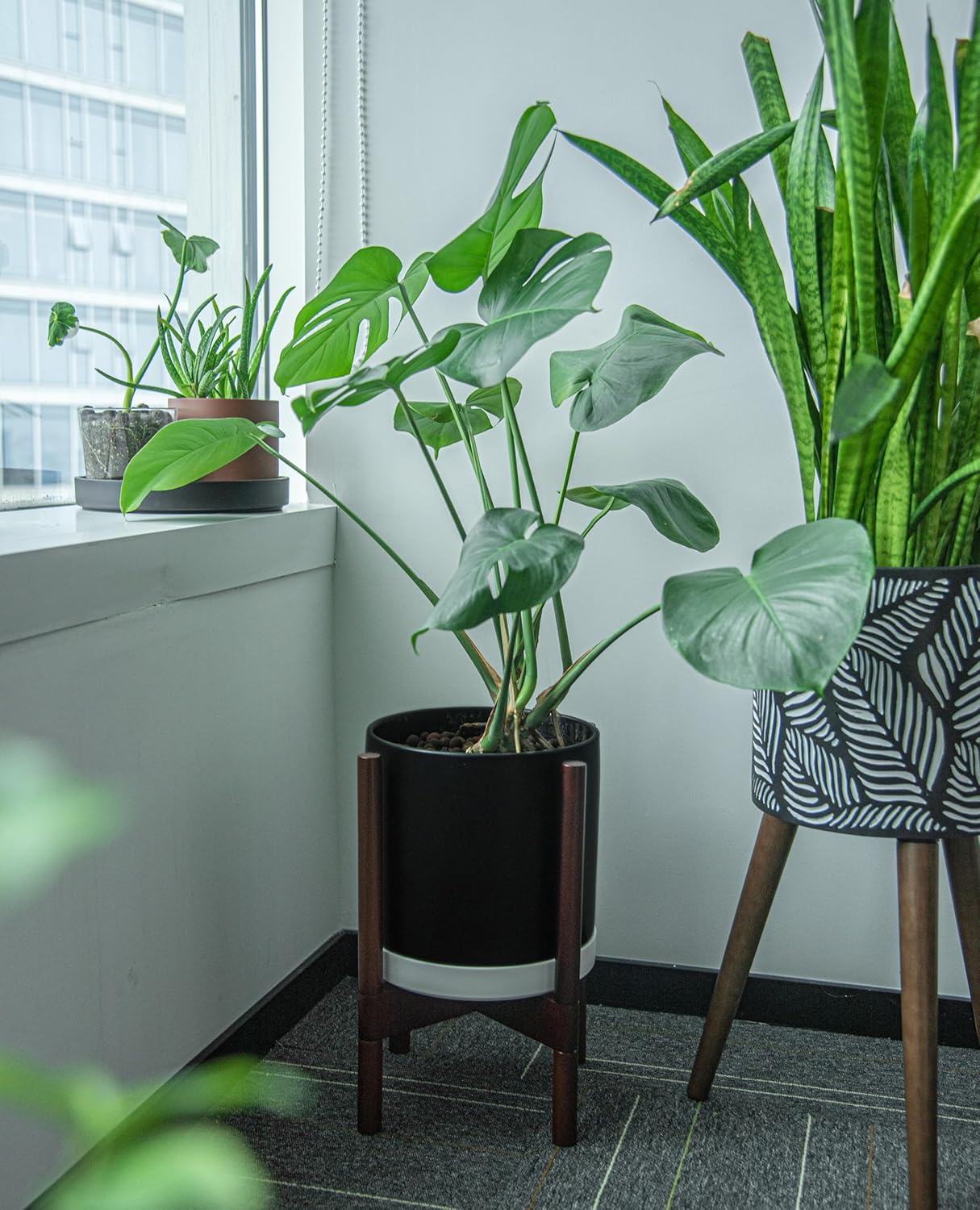 - Enhanced Water Management: Features a deeper saucer design that allows for more efficient watering techniques such as bottom watering, while lifting planters to channel water away, keeping areas dry and clean.