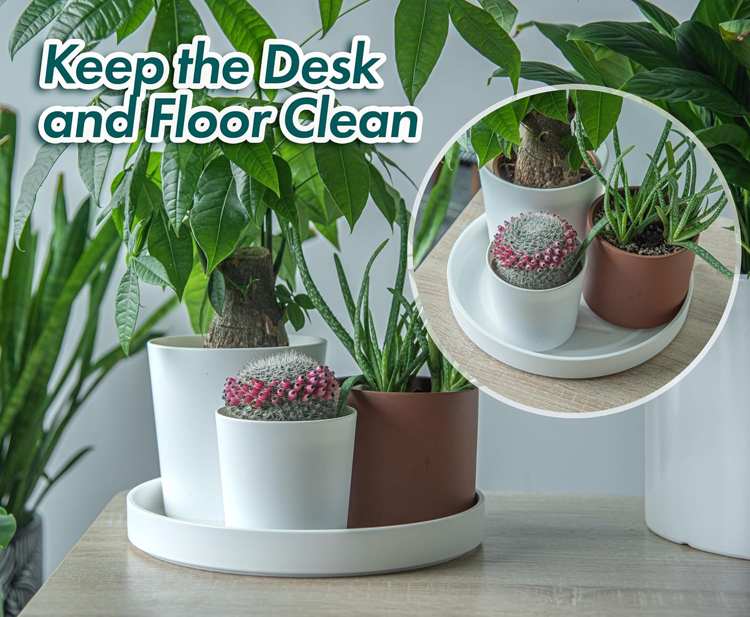 - Enhanced Water Management: Features a deeper saucer design that allows for more efficient watering techniques such as bottom watering, while lifting planters to channel water away, keeping areas dry and clean.