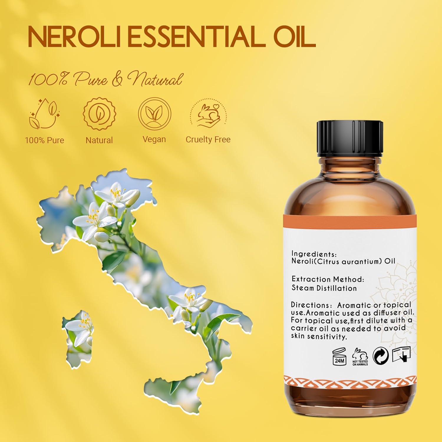 Neroli Essential Oil Organic for Skin Diffuser Room Spray, 100% Pure Bitter Orange Blossom Essential Oil Neroli 4 Oz