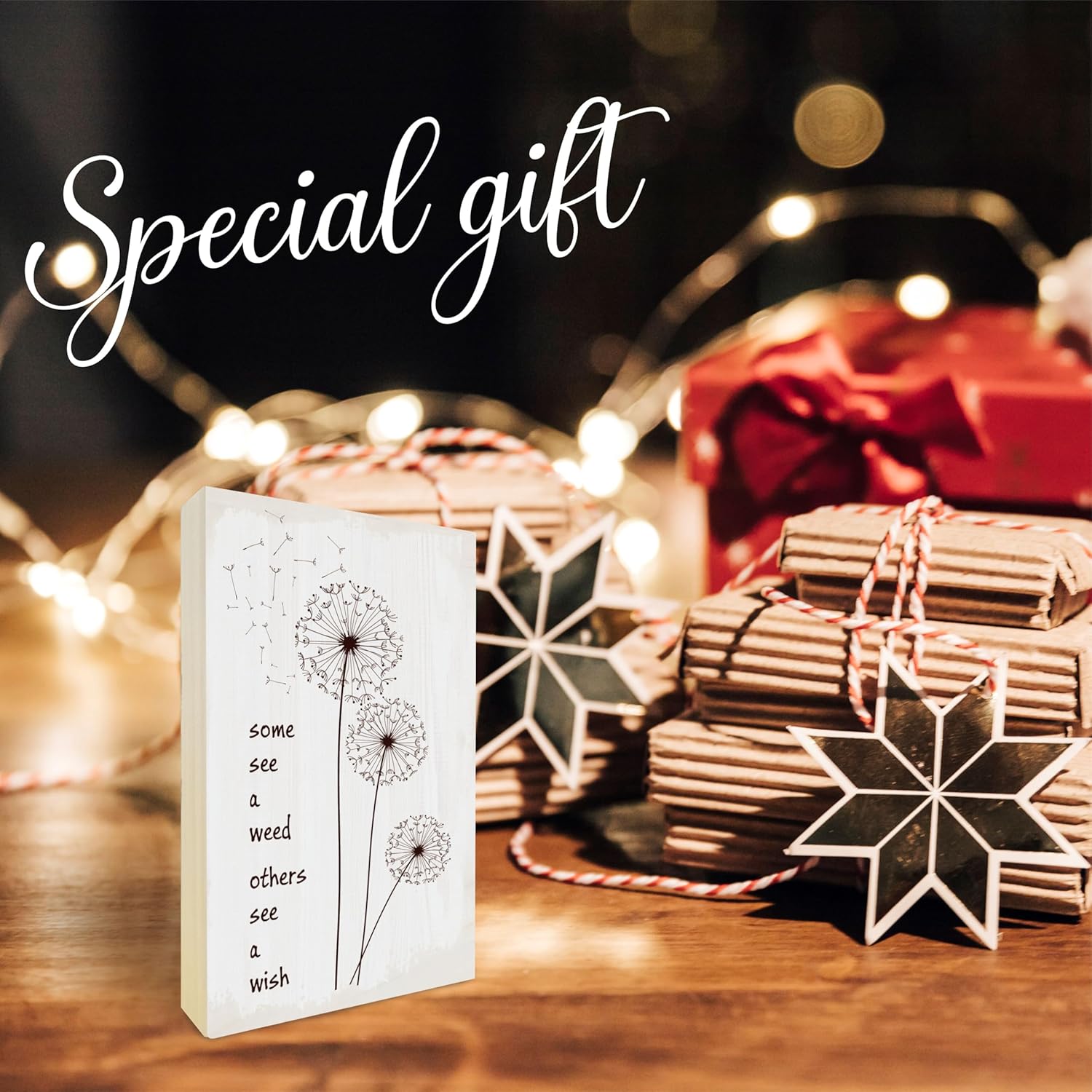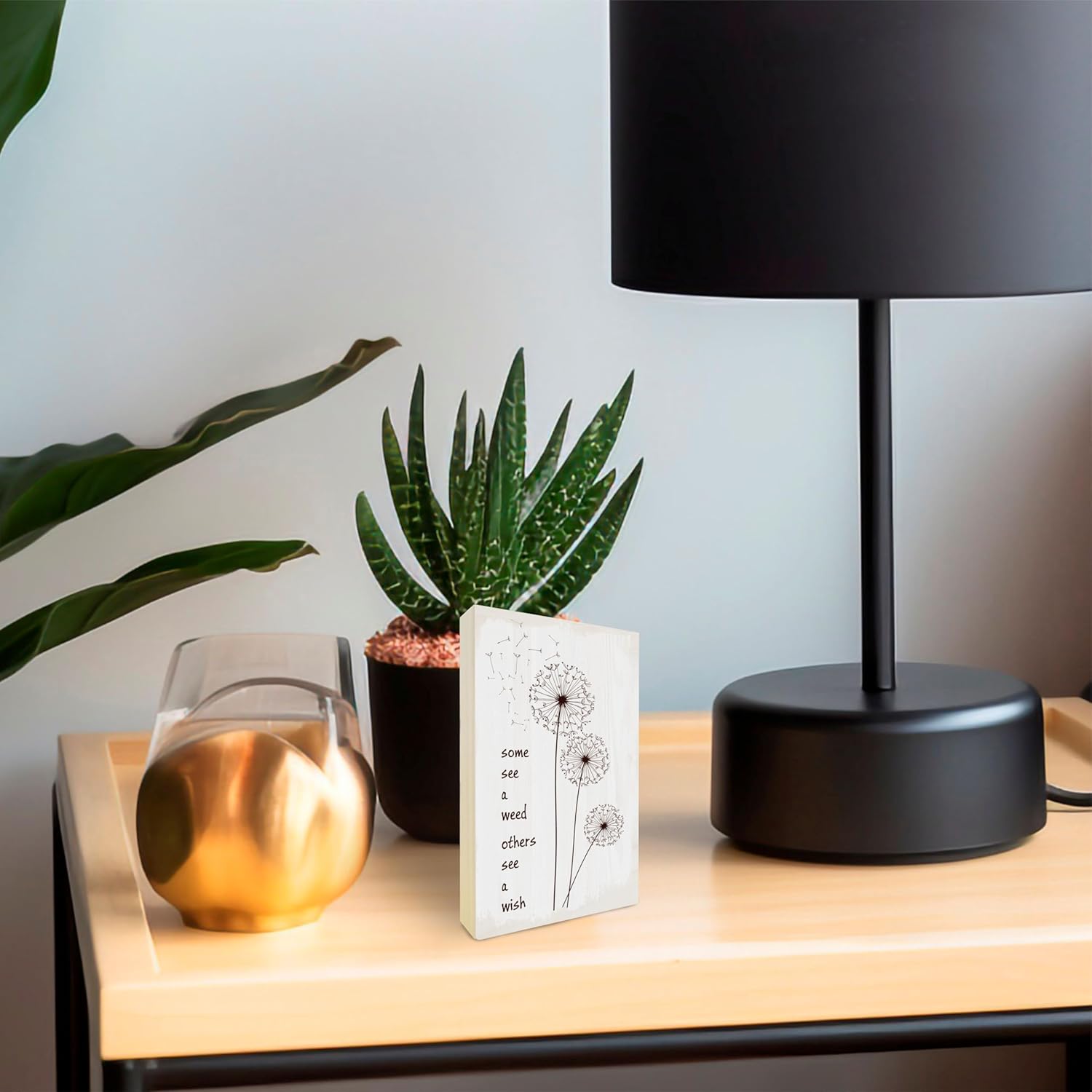 Dandelion Wooden Block Sign - Some See A Weed Others See A Wish - 5"X3" Postive Pine Wood Plaque, Home & Office Desk Decor, Housewarming Gift For Friends, Room Tabletop, Shelf Accessories - A11