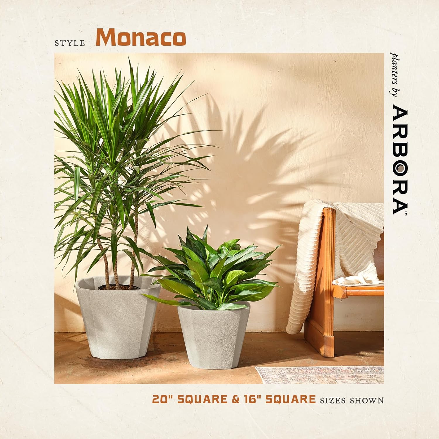 - Premium Polyresin Pots - Elevate your space with the Arbora 16" Monaco Square decorative planter, featuring a natural textured surface and classic cream finish for a touch of sophistication. Ideal for both outdoor gardens and indoor living areas.