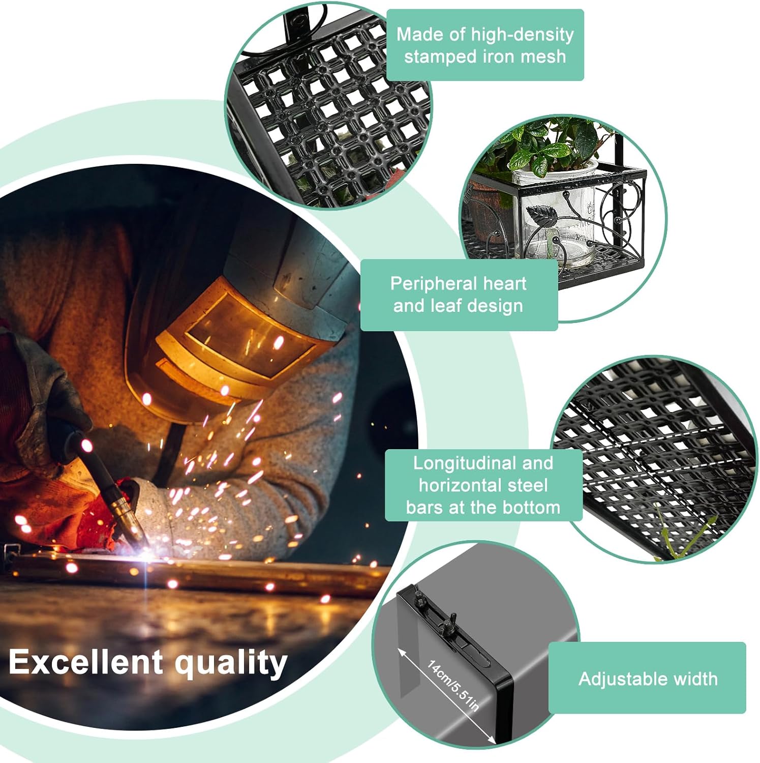 - High quality Patio Railing Shelf : Basket planter with bracket is made of premium metal, rustproof wrought iron craft, durable and reliable, with good load-bearing capacity and certain anti-rust ability, it is an excellent choice for growing flowers on your balcony fence. simple but elegant look, ideal for hanging railing planter stand.