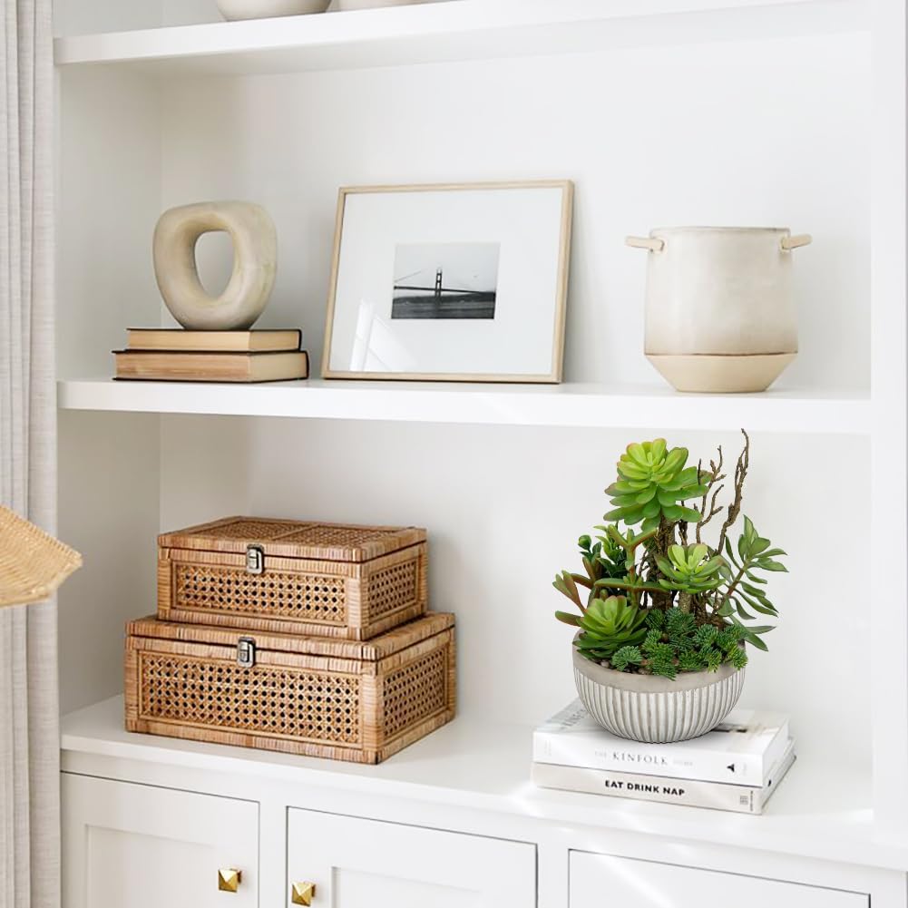 - Artificial potted plants decor: Small fake succulents are perfect for home, office desk, bedroom, bathroom shelf, kitchen, apartment, cafe, etc, faux plants in pots will add a natural accent to your home decor.