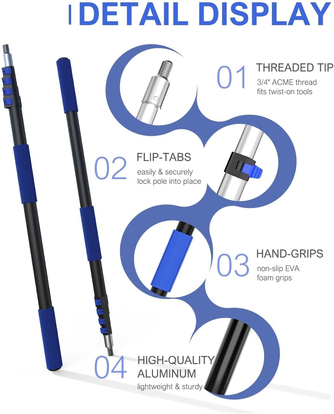 - Reach High Up to 26 Foot - SKGPOLE 5-20ft fruit picker telescopic extension pole with 3/4" American standard thread, can reach a length of up to 26 foot when fully extended. The 4 flap locks on the extension pole are used to freely adjust to any length and height you want and lock it in place. You can pick fruits from tall trees safer and more efficiently.