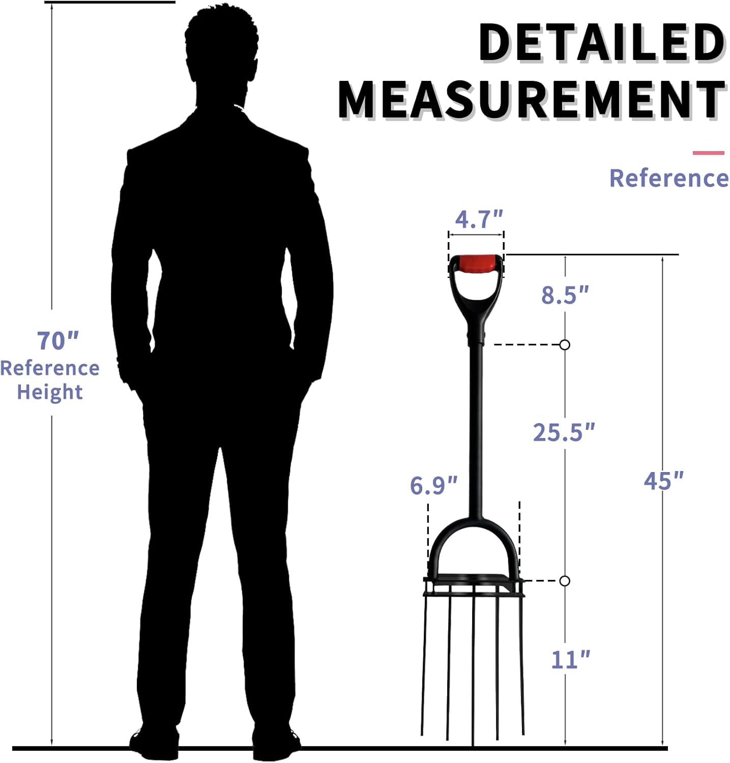 - 【HEAVY-DUTY MANURE FORK with Forged Steel Head】- Featuring an integrated forged steel fork head and a high-strength handle, our manure fork is built to tackle sticky or rocky soil without breaking. The 45-degree sharp tines ensures optimal control and comfort, perfect for heavy-duty digging tasks. You'll appreciate its sturdiness, ideal weight, and sharpness.