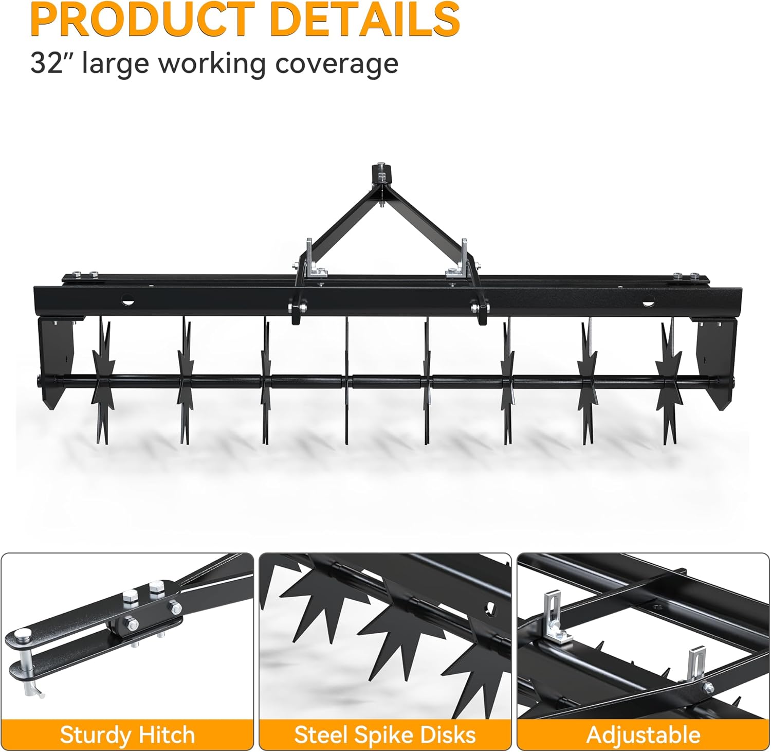- Powerful Function: With 8 steel spike disks, YINTATECH lawn aerator tow behind achieves soil aeration penetrating of up to 2" in depth, creating reservoirs that bring oxygen, fertilizer, and water into the root zone