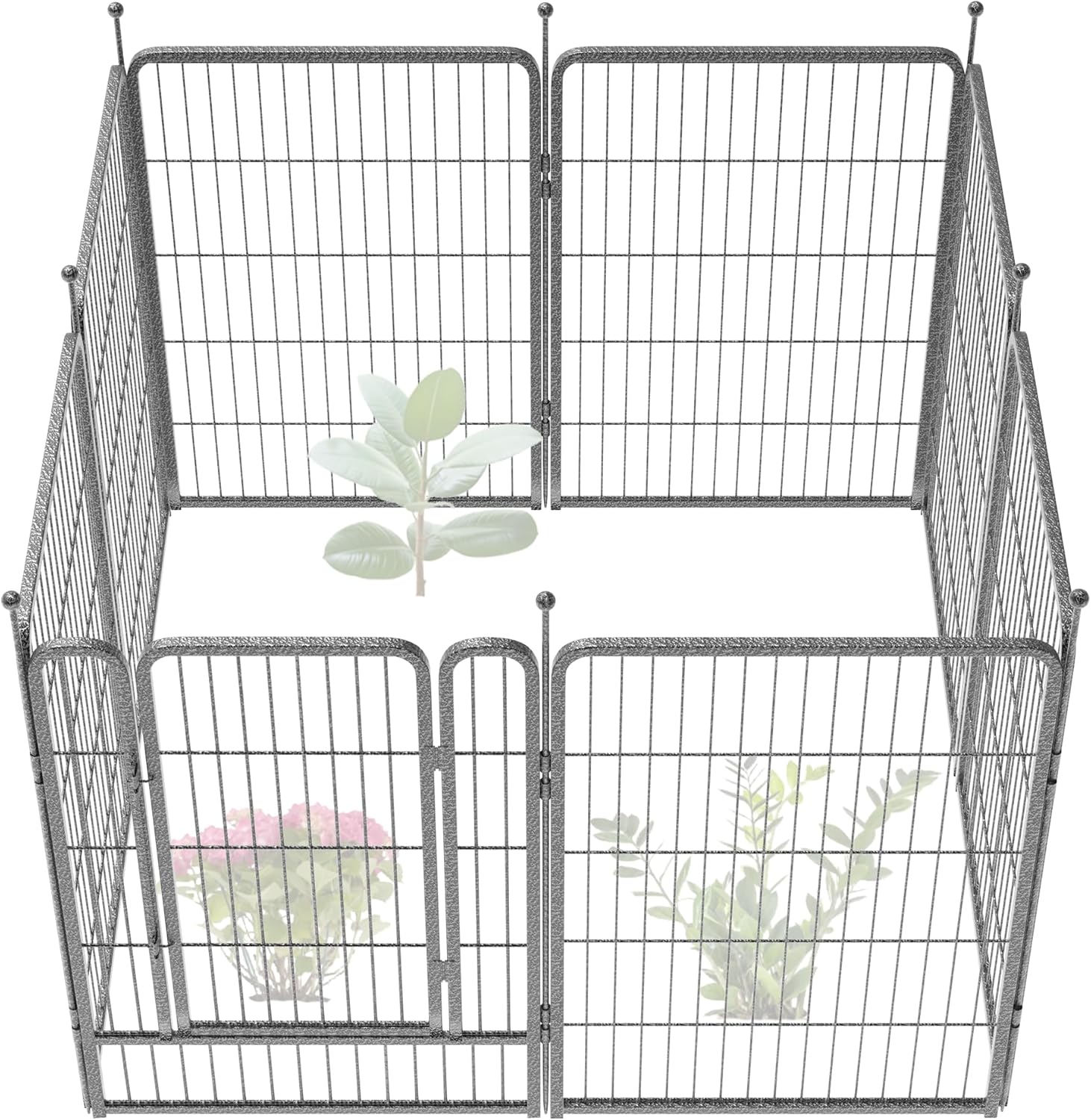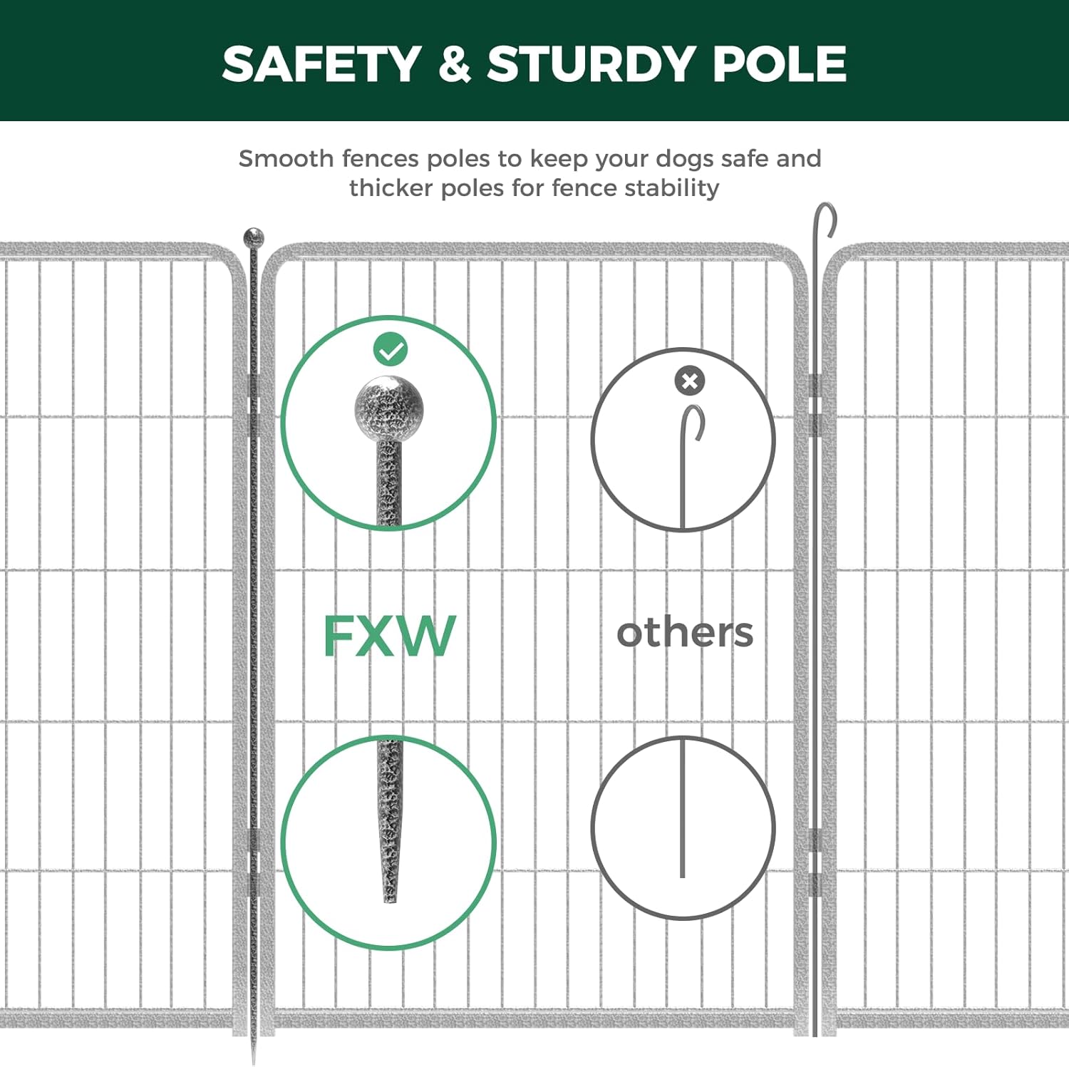 FXW Garden Fence Outdoor for The Yard – 40in(H) x 18.2ft(L) Heavy Duty Metal Animal Barrier for Dog and Rabbit, Decorative Dog Fence, 8 Panels, Silver