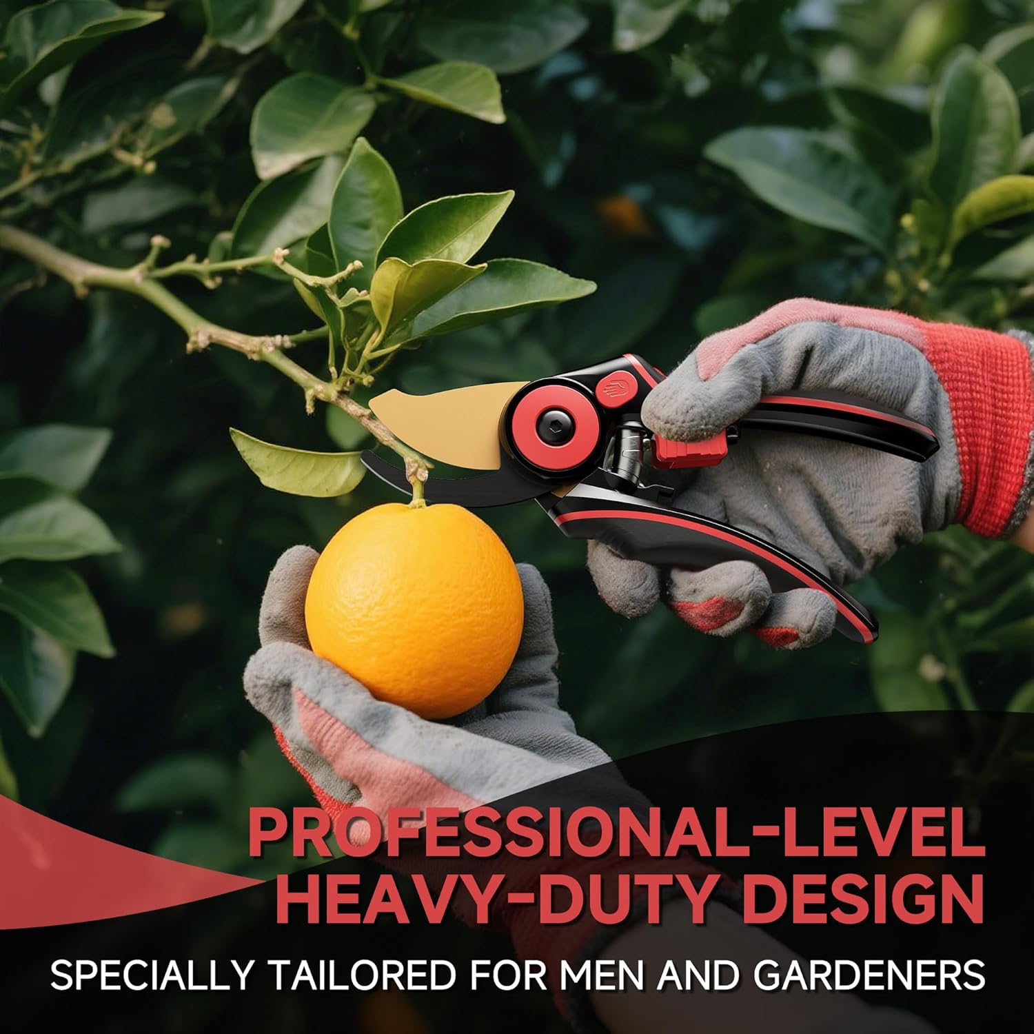 - "✋ 【Integrated Aluminum Alloy + TPR Rubber Handle】Shock absorption and anti-slip, long-lasting comfort The anti-slip handle conforms to the palm curve, and the outer layer is wrapped with shock-absorbing TPR soft rubber, which strongly absorbs the impact force of cutting. These ergonomic garden shears do not slip even in rainy or sweaty conditions. After continuous pruning for 1 hour, hand fatigue is reduced by 70%. Female users can also handle heavy pruning with ease using these lightweight yet sturdy hand pruners."