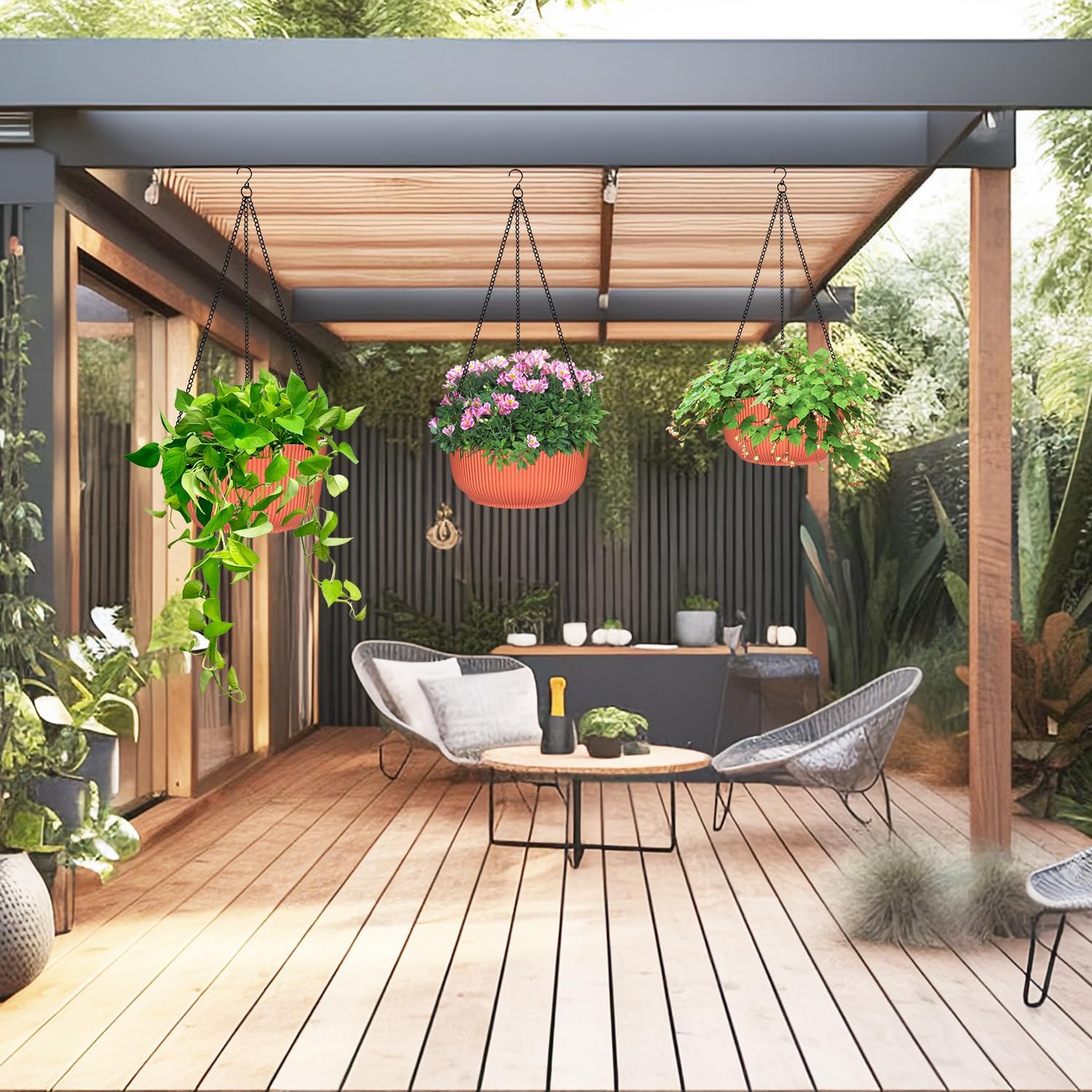 - Durable Quality Hanging Basket: Crafted from thick PP material with rust-resistant metal chains, these hanging pots are built to last, offering both style and strength for your gardening needs