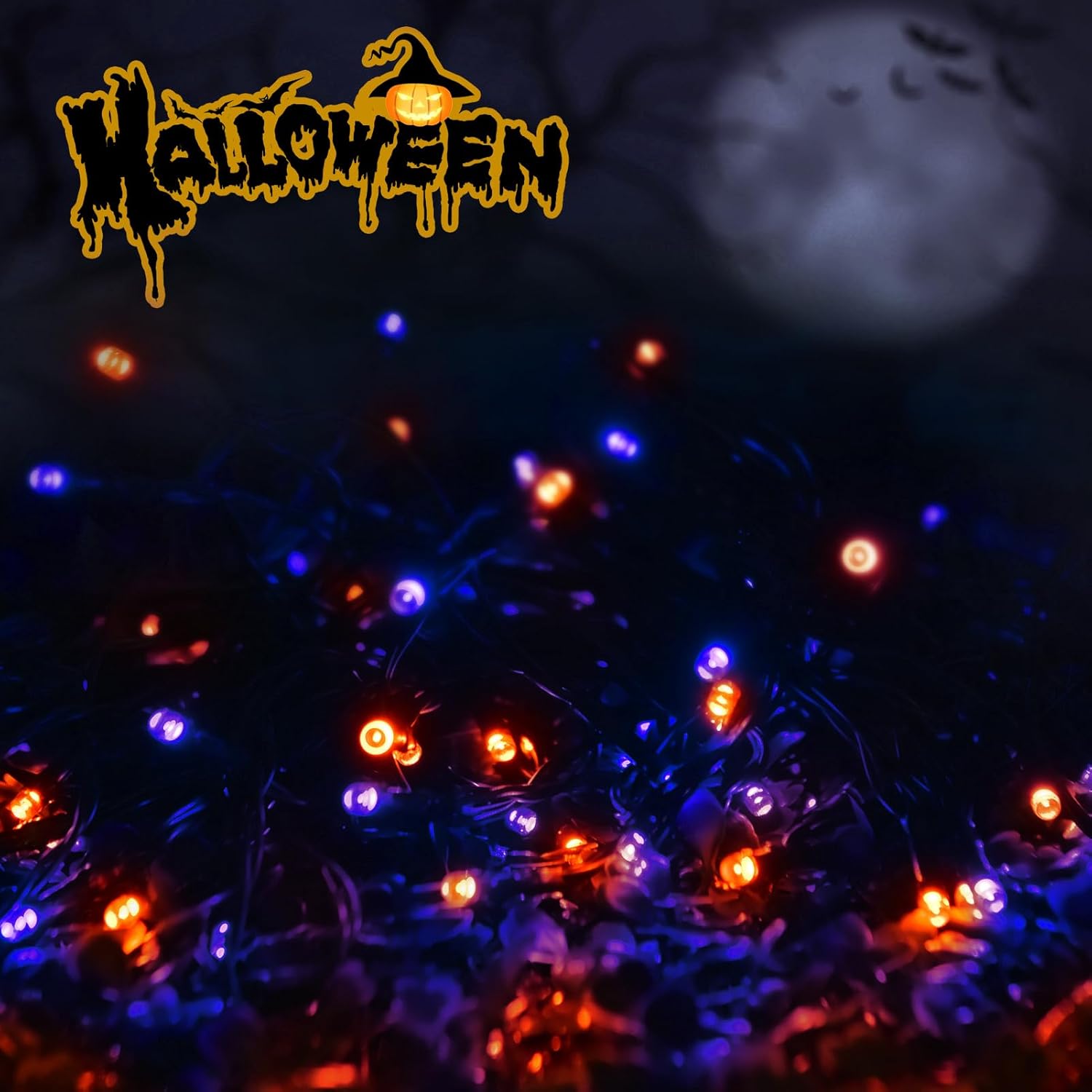 2 Pack 400 LED Solar String Lights, 8 Modes Solar String Lights for Outside, Waterproof and Solar Powered Outdoor String Lights for Holiday Christmas Yard Garden Tree Wedding Party (Orange Purple)