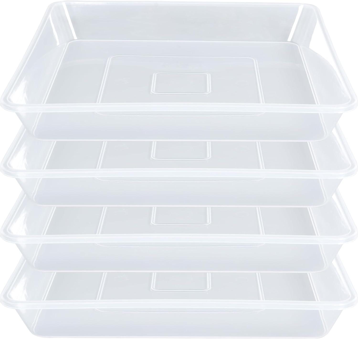 Square Plant Saucer 16 Inch 4 Pack, Durable Clear Plastic Flower Plant Pot Saucer, Square Planters for Indoors and Outdoors Plants, Garden Large Plant Saucers for Pots Plant Trays.