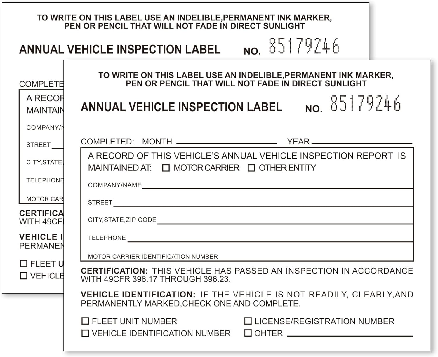 - DOT Compliance: Our annual vehicle inspection report includes 50 double-layer vinyl stickers for vehicle inspections,ensures that your vehicles are compliant with FMCSA and DOT standards,simplifying the inspection process and enhancing safety.