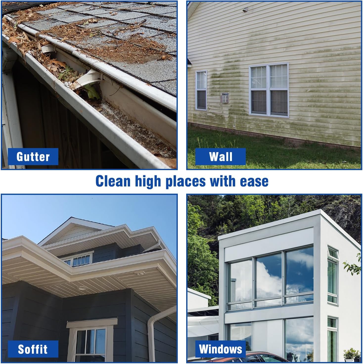 - PROFESSIONAL TELESCOPING WAND - The RAYNEL telescoping extension wand with 5 stage design provides up to 24 feet of additional reach, no ladder needed. Equipped with brush head and 2 kinds of extension wands, it can easily reach gutters, soffits, fascia & siding.