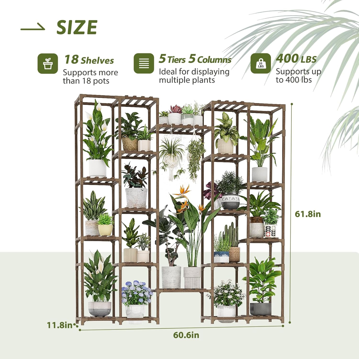 - Enhanced Design: Wider middle shelves comfortably fit 2-3 plant pots, giving your tall or hanging plants more space to thrive