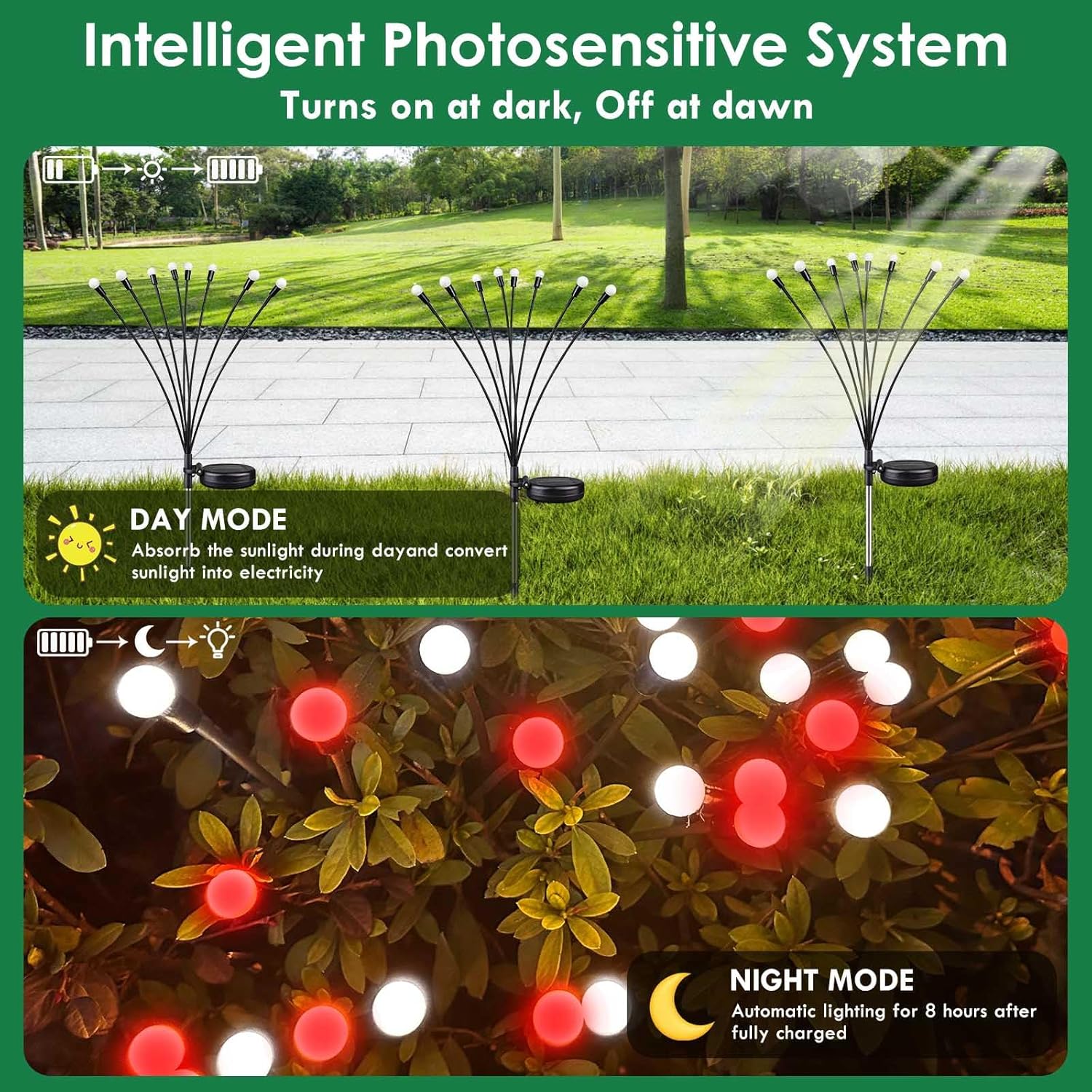 - 【Swaying When Wind Blows】The firefly solar christmas lights is propped by very soft & flexible wire. so when the wind blows, the solar powered firefly lights swings with the wind. Waterproof Christmas lights outdoor dancing beauty creates a romantic atmosphere and adds a warmth to the garden at night!