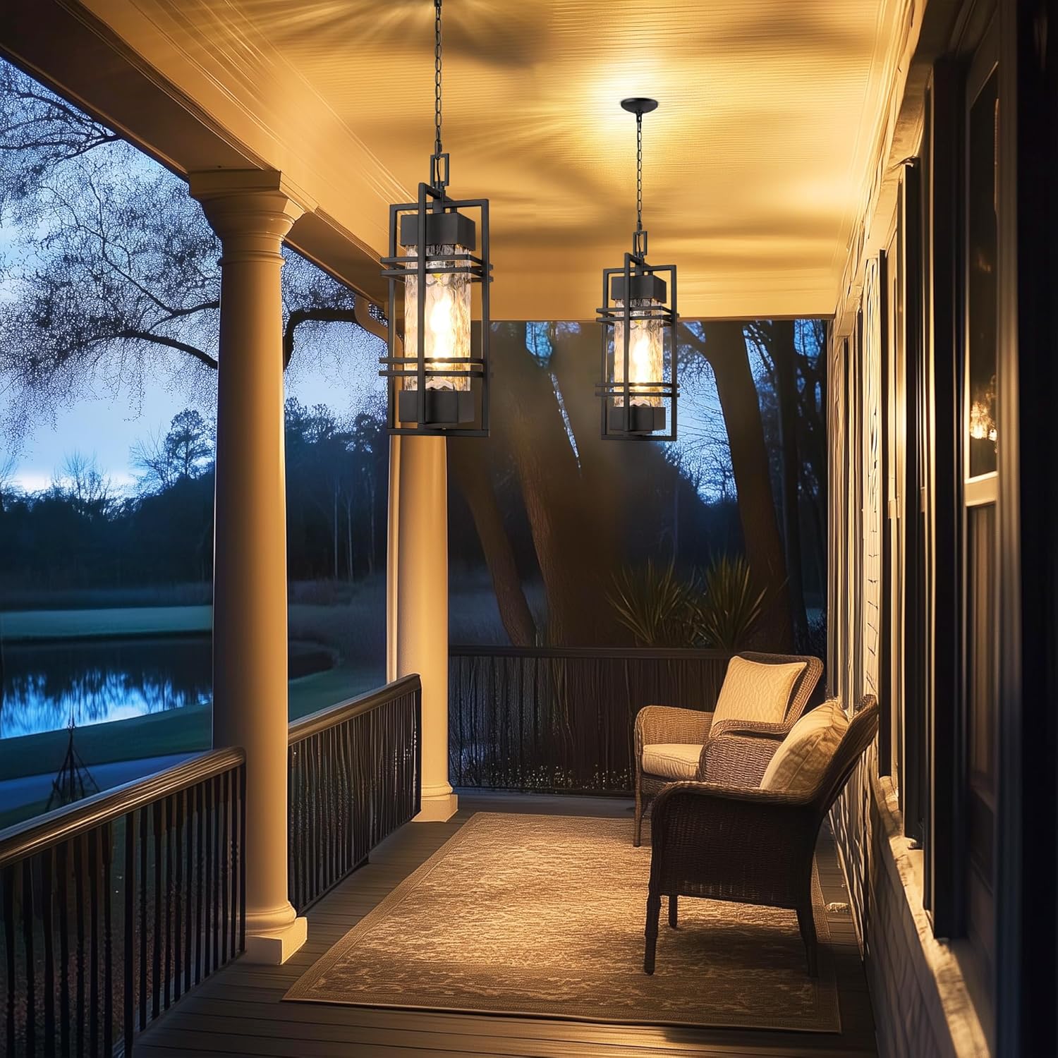 - 💡Corrosion-Resistant & Weatherproof - Made of matte baked enameled metal and thick water-seeded glass, our exterior pendant lights have excellent corrosion resistance and can withstand all kinds of outdoor weather!