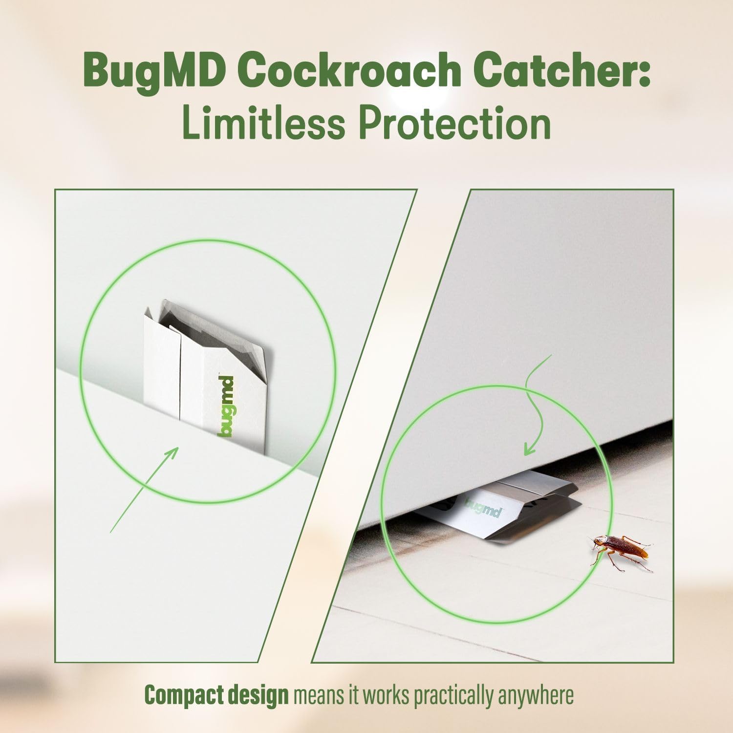 BugMD Indoor Cockroach Killer & Roach Trap - Sticky Insect, Spider, Cricket Control for Home - Glue Traps Pest Defense, 12 Pack Sticky Bug Solution