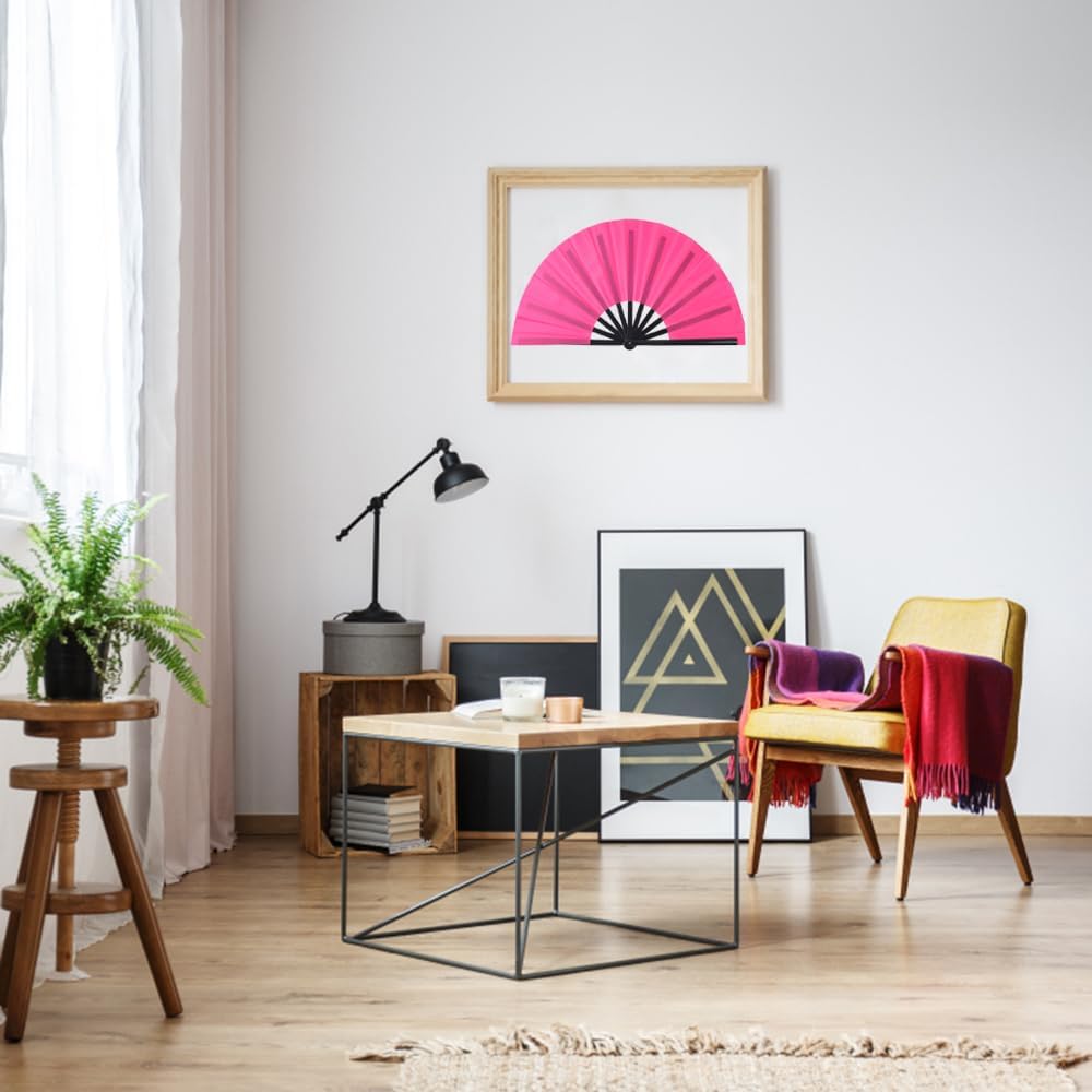 4 Pack Large Folding Hand Fan, Plastic Hand Held Folding Fans Chinese Kung Fu Hand Fan Decorative Folding Fans for Dance, Performance, Festival or Home Decorations(Pink)