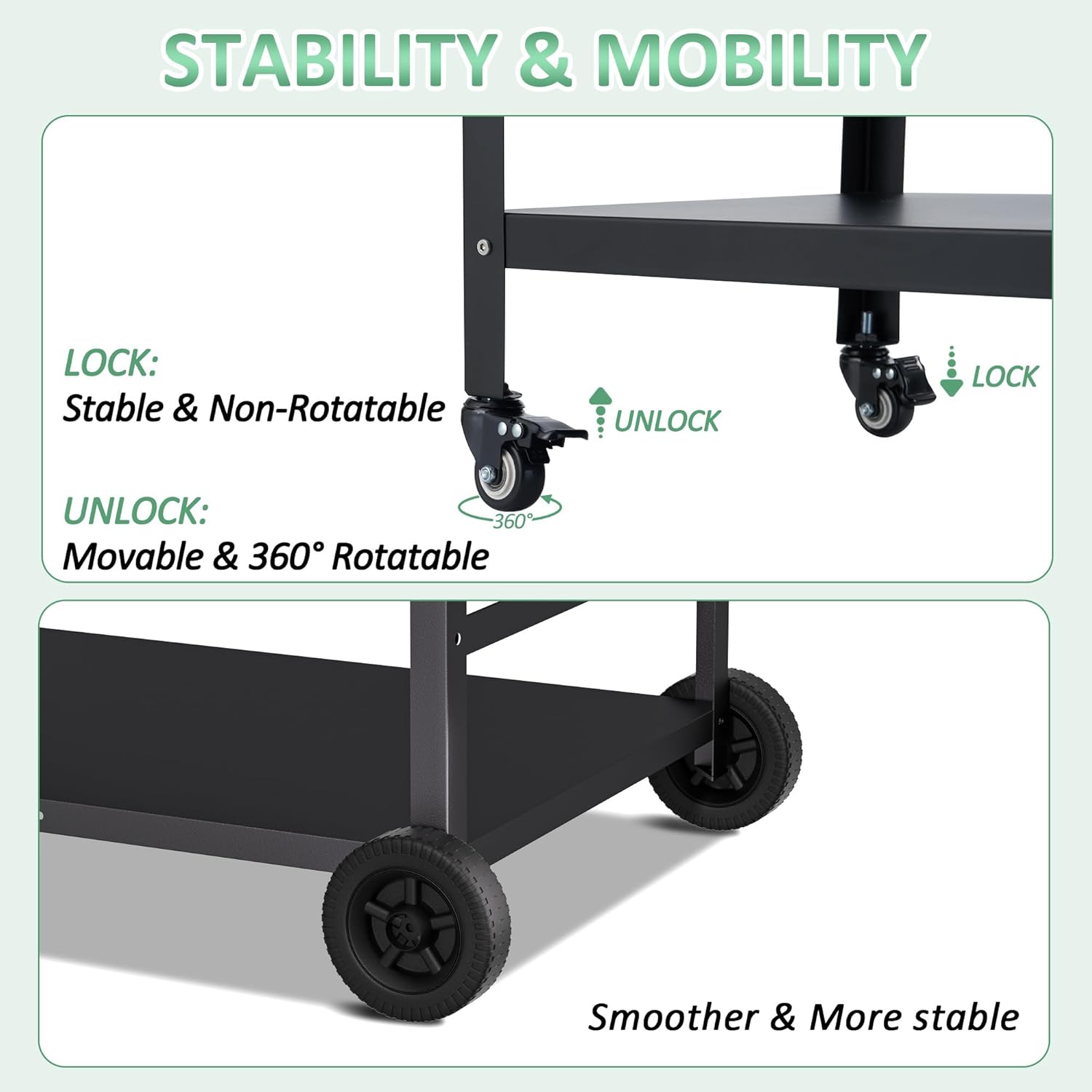 Spurgehom Outdoor Grill Cart, Pizza Oven Stand Table with Wheels Dining Cart for Outside Patio, Movable Kitchen Cooking Prep Table BBQ Cart with Mesh Racks for Home Party, Bar, Camping