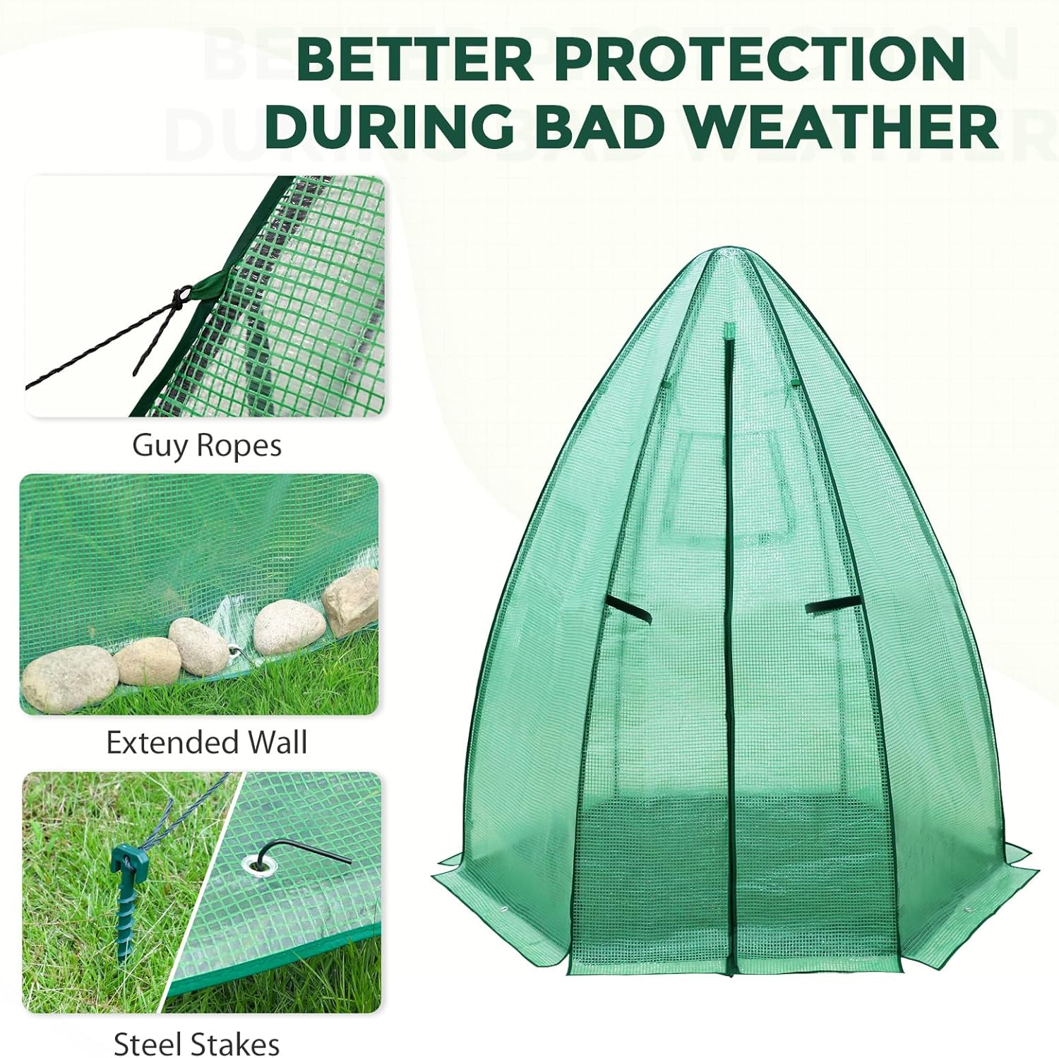 - WIND RESISTANCE & STABILITY: The extended flap on the bottom cover of the small greenhouse can be secured with ground stakes or weighted down with soil, rocks, or weight bags. Additionally, upgraded stakes and tie down ropes are included to improve durability and stability in windier conditions.