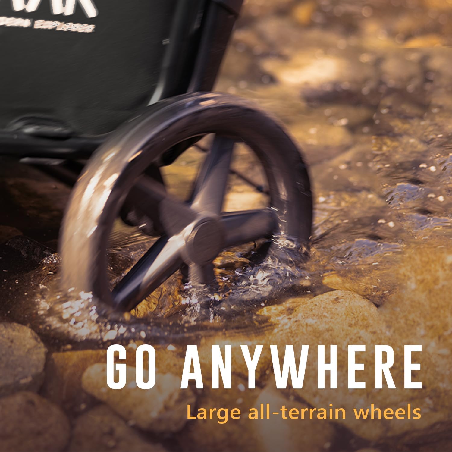 400lbs Large Capacity Collapsible Wagon Cart,Folding Utility Heavy Duty,All Terrain Big Wheels for Garden Camping Sports Outdoor Shopping, Black