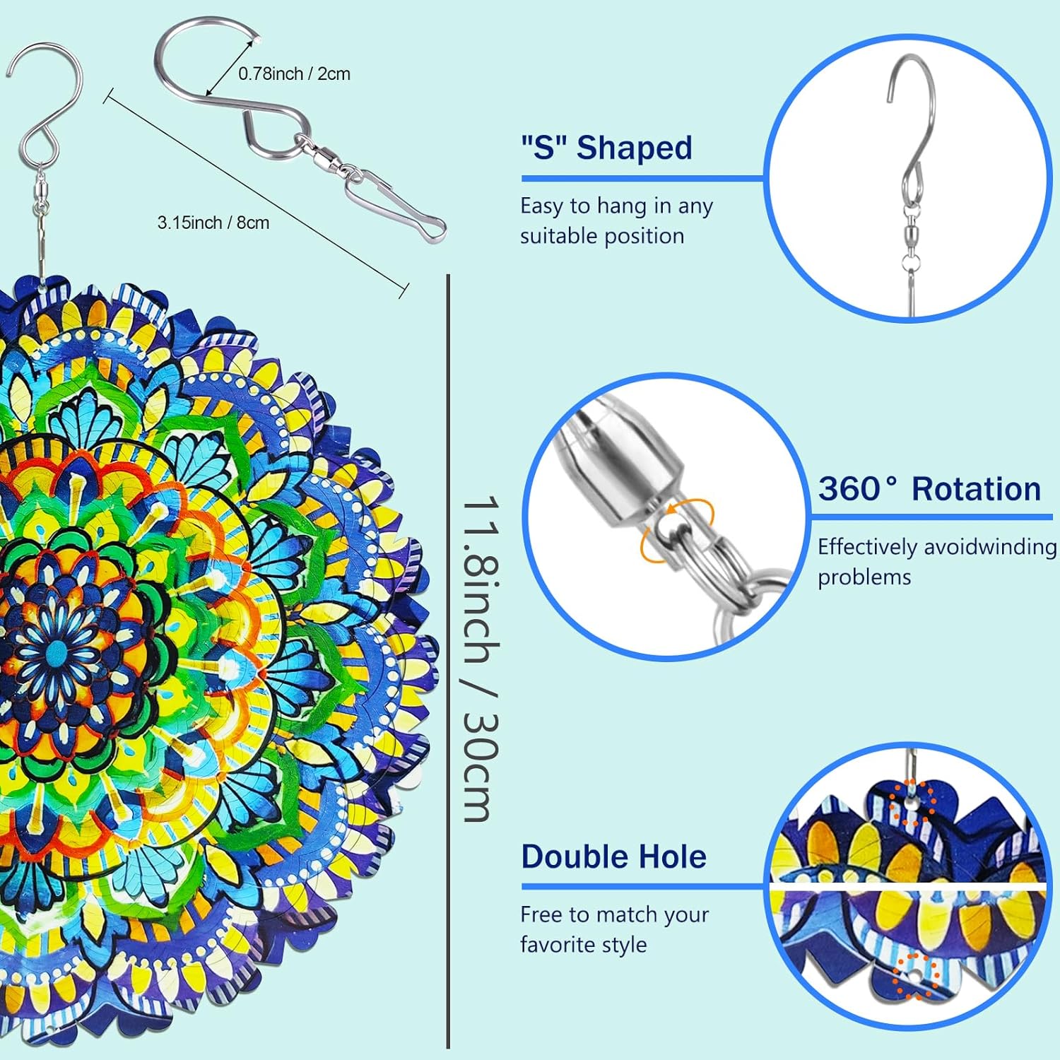 - Easy to Hang and Versatile:This garden wind spinner comes with a swivel hanging hook, making it easy to set up and adjust for the perfect spin. Its lightweight yet sturdy design ensures smooth rotation, and it’s versatile enough to be displayed in a variety of settings, from your garden to your balcony, porch, or even indoors.