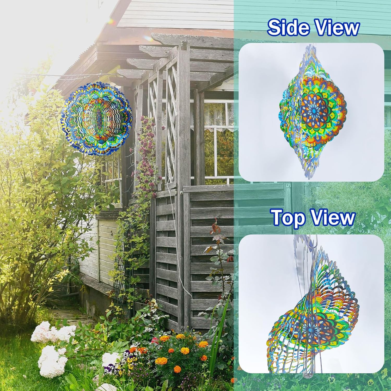 - Mesmerizing 3D Visual Effects:Watch as the wind spinner catches the breeze and transforms into a mesmerizing 3D display. The floral patterns create dazzling, holographic-like effects, adding a touch of magic to your garden or outdoor living area, whether in sunlight or under evening lights.