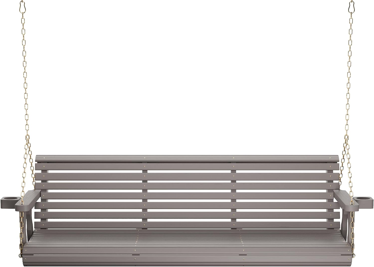 Amish Casual 6 Foot Roll Back Porch Swing with Cup Holders in Semi-Solid Gray Stain - Amish Made in The USA from Treated Pine Heavy Duty 700 Lb. Weight Capacity