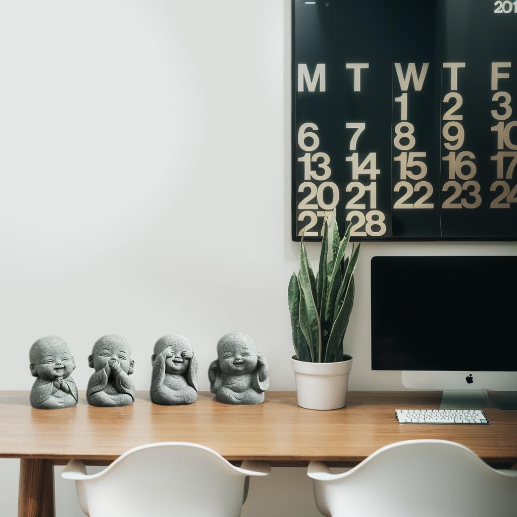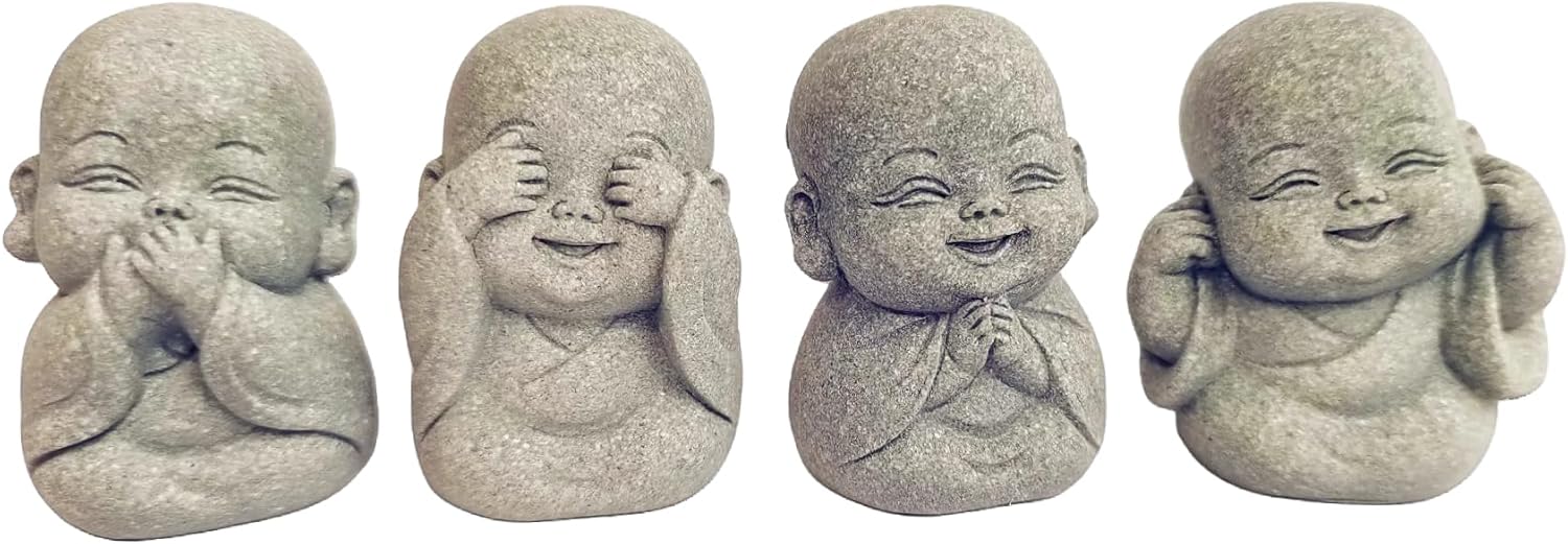 - 【MINI BUDDHA STATUE TO INSPIRE WISDOM】 Our set includes four mini Buddha statues that symbolize wisdom. "Don't look: Don't look at things that affect your mood, so as not to disturb your mood." "Don't listen: Don't believe rumors." "Don't say: Don't comment on things, avoid troublesome things affecting your mood." "Don't think: Don't think too much, stay detached, and enjoy life."