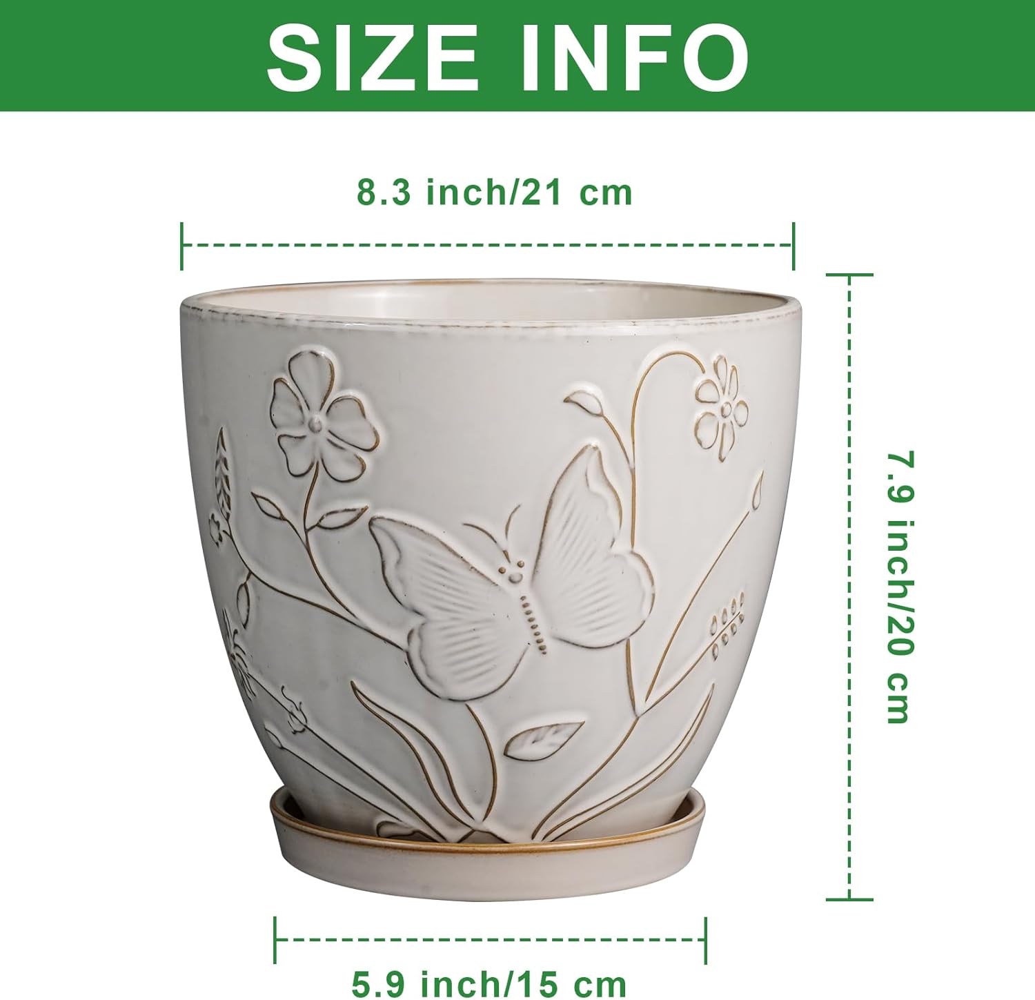 - Materials: This 8 inch plant pot is made of high-temperature ceramic material, durble and solid. This ceramic planter pot can be used indoors and outdoors for a long time, without worrying about fading, warping or rusting