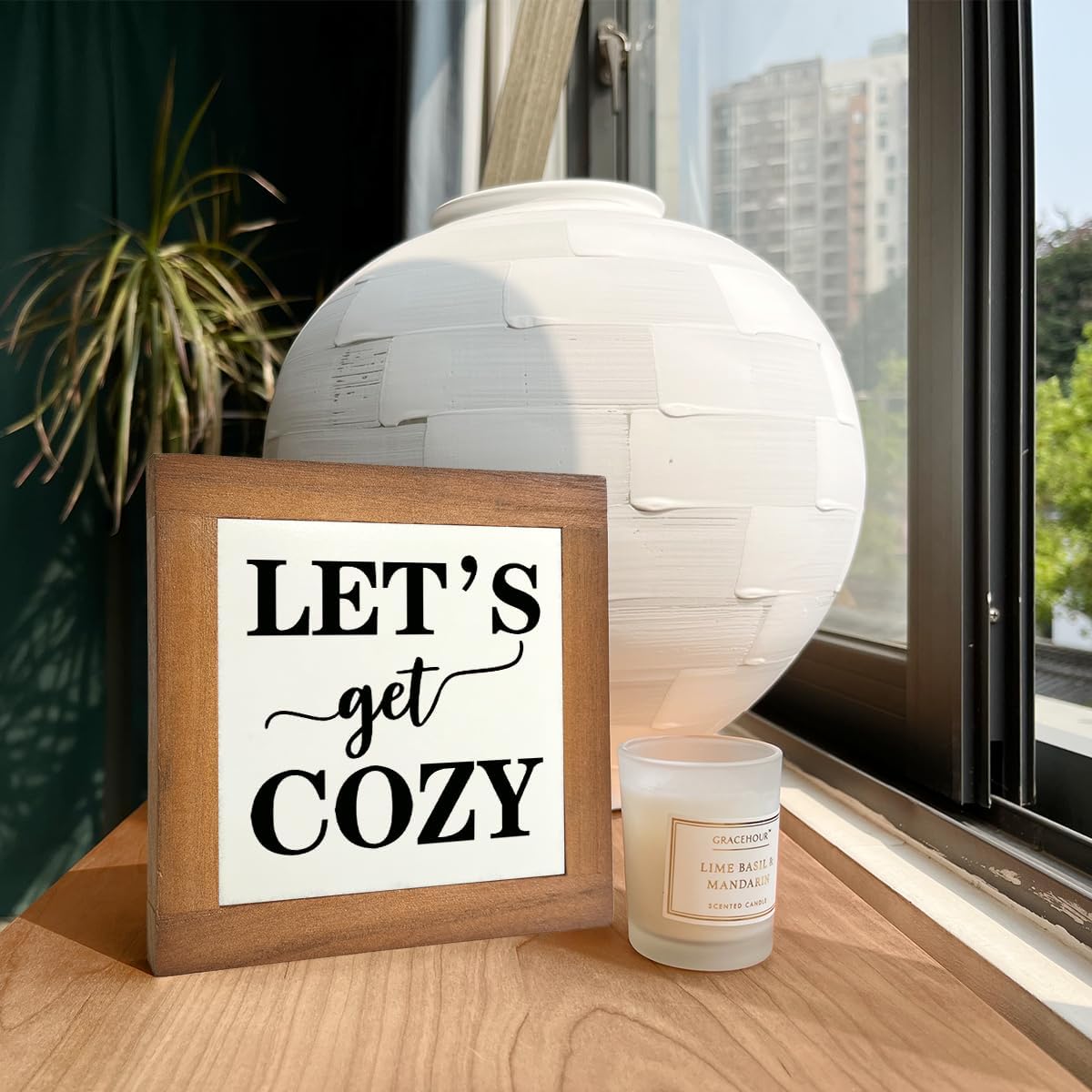 Inspirational Wood Signs, Box Wood Plaques Desk Décor, Farmhouse Home Decor Sign for Shelf, Family Table Decor for Kitchen Bedroom Dining Room, Living Room Decor, Housewarming Gift, Let's Get Cozy F