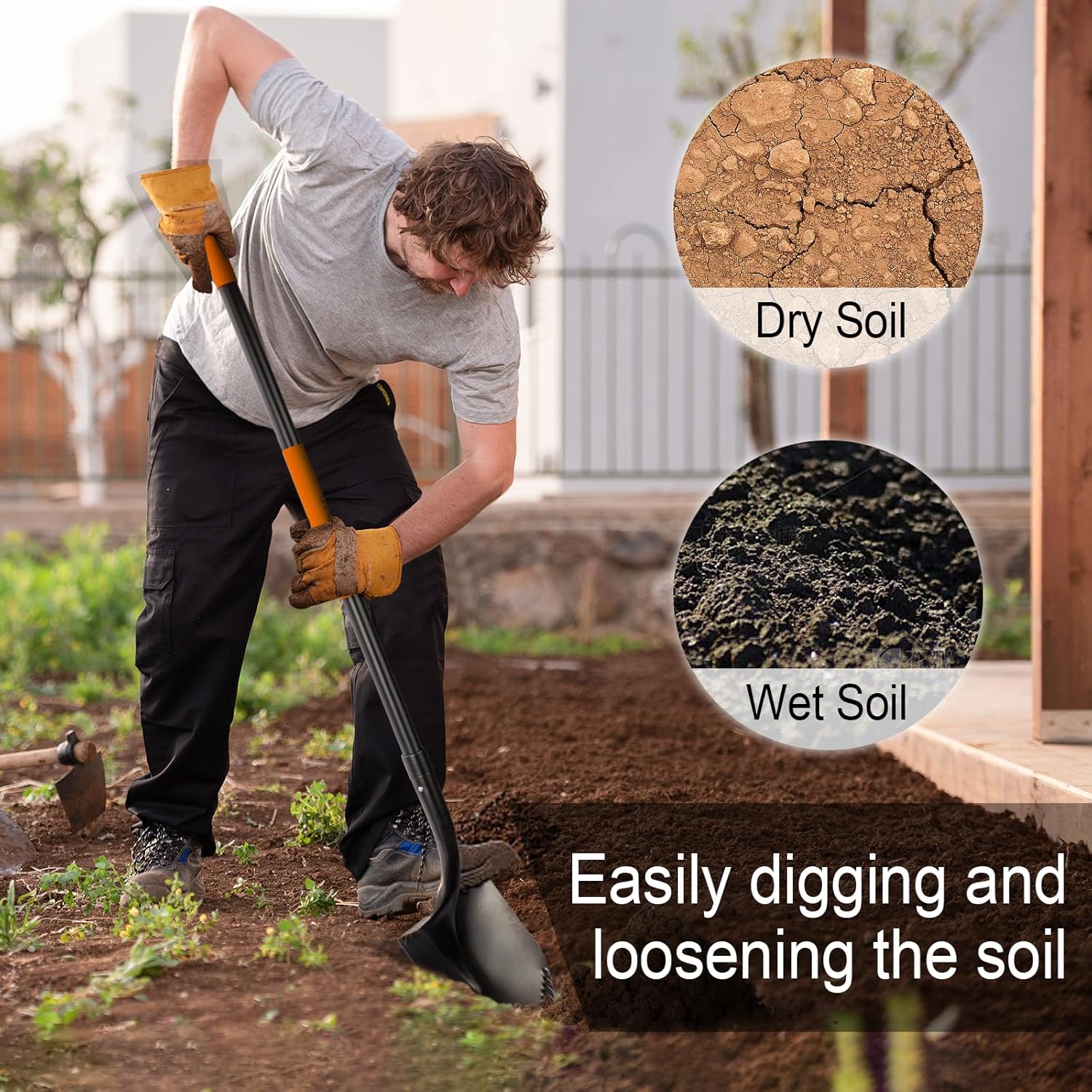 - Innovative Handle Design: Special thickened fiberglass handle can withstand greater pressure and torque, no need to worry about bending and breaking, the shovel handle with non-slip rubber grips, comfortable and more stable grip in the process of use, preventing the hand from slipping off.