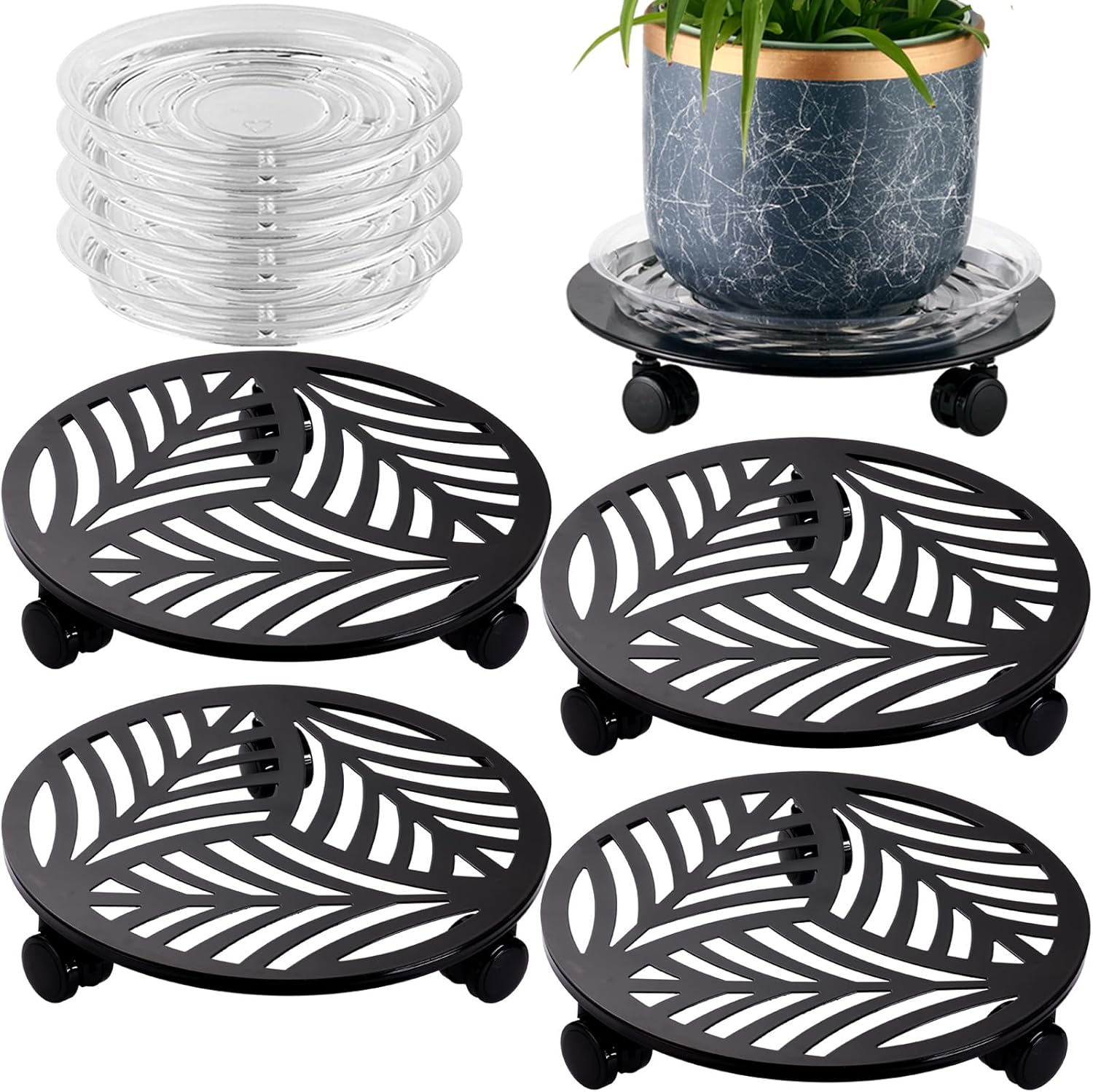 - Clear Plant Saucers & Protect Your Floor: The 4 packs of clear plastic plant saucers help catch the water and prevent getting wet when watering. These plant saucers on wheels will help keep a clean floor and avoid water stains. Each wheeled metal plant caddy holds your heavy plant pots while add an addition to your home decor.