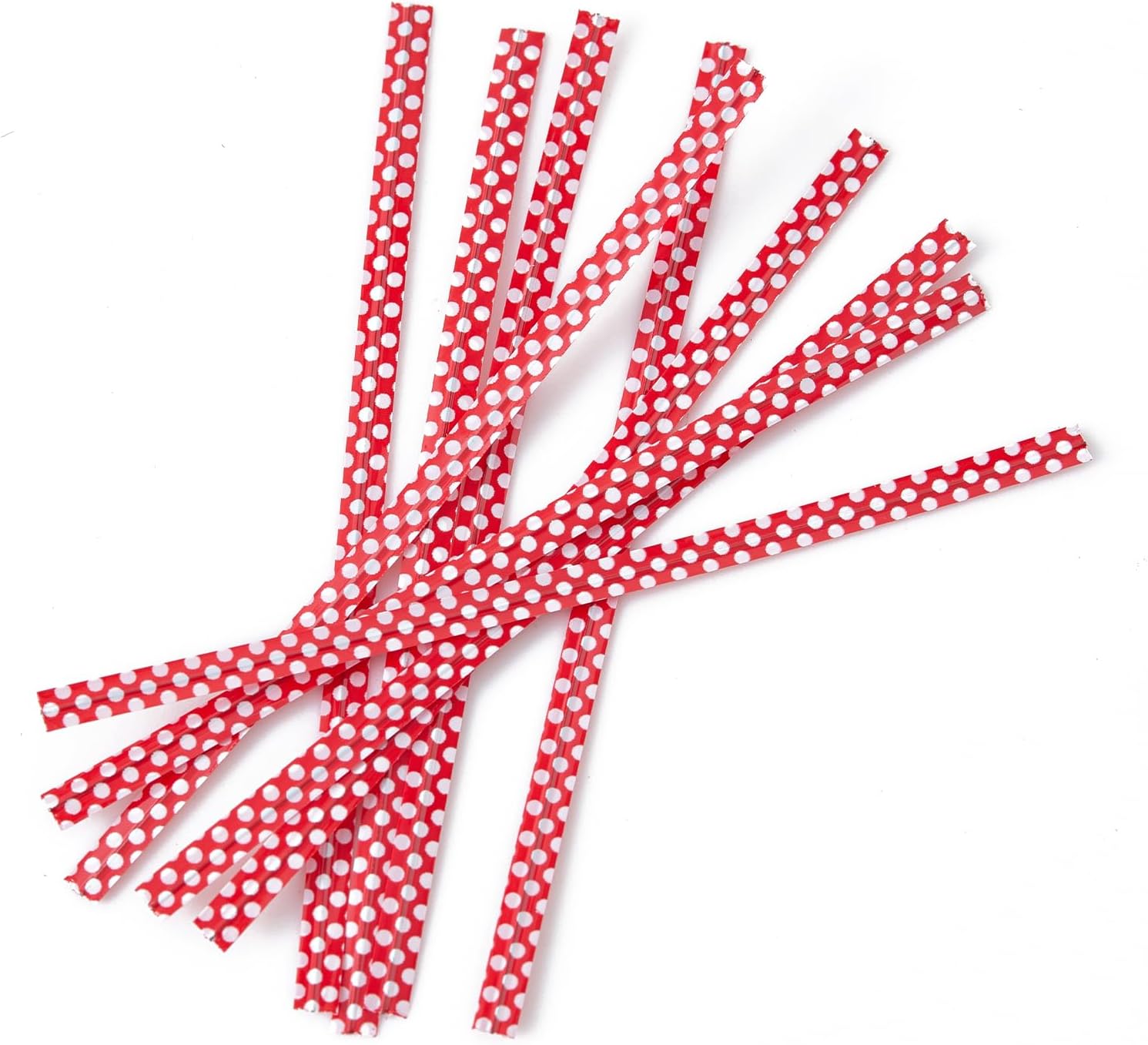 500 PCS 4" Polka-Dotted Bag Twist Ties,Red with Dots Plastic Twist Ties Bread Bags Ties for Candy Cookies Gift Bags and Decoration