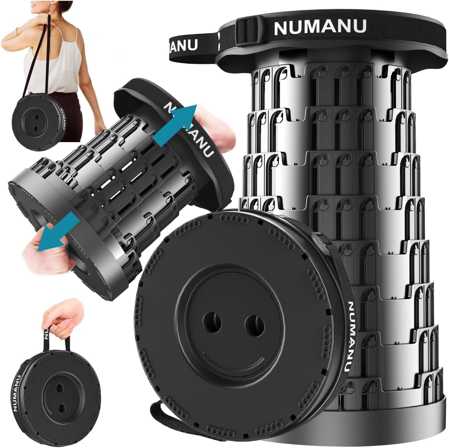 - 🔥【ENDLESS OPTIONS】NUMANU Portable Telescoping Collapsible Stool has many use cases such as: Camping, Hiking, Waiting in Line, Live Concert Events, Plumbing, Construction, DIY/Fixing, Fishing, Gardening, Resting, Travel, Commute, Bus, Train, Subway and More...