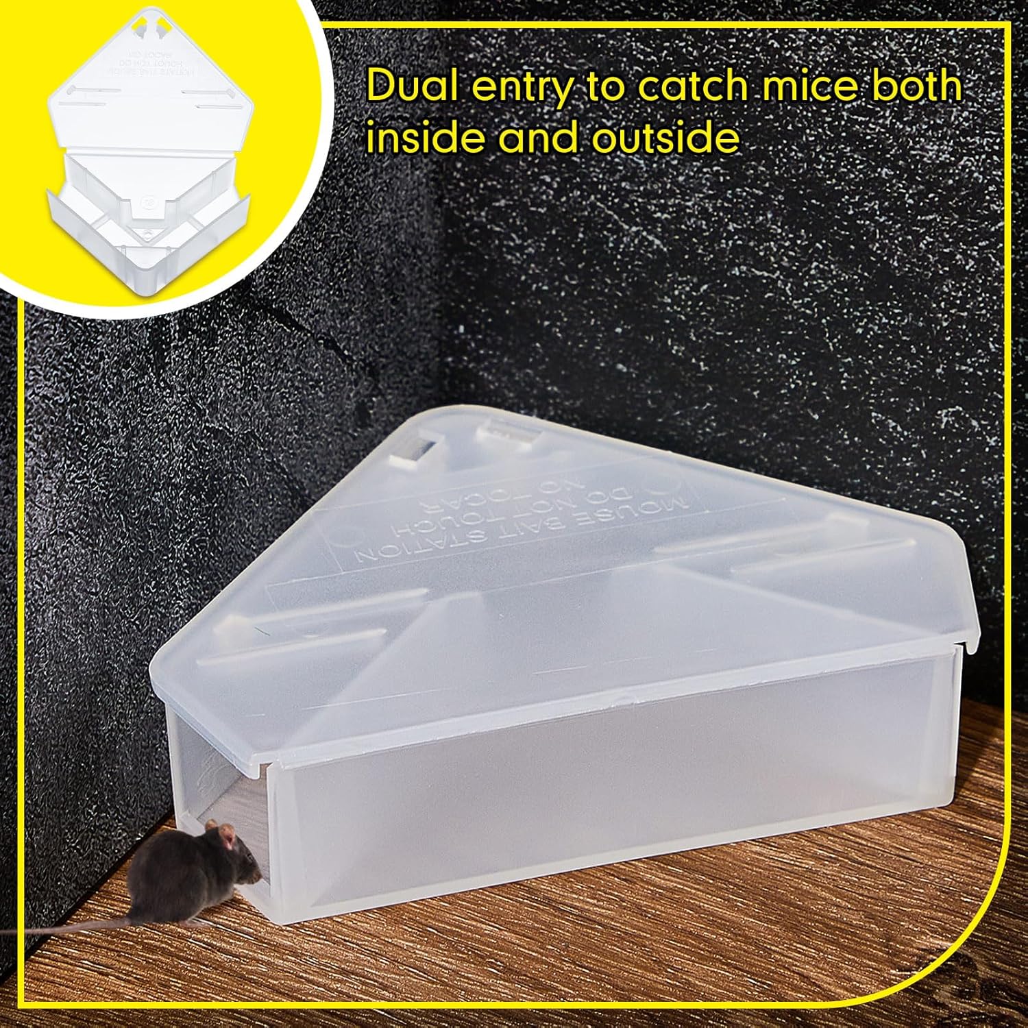 - Triangle Design: the mouse station is designed in a triangle shape, which is stable and safe, suitable for placing in small spaces, corners and under furniture;Please note: The mouse trap station will not catch mice directly, please use it with poison bait