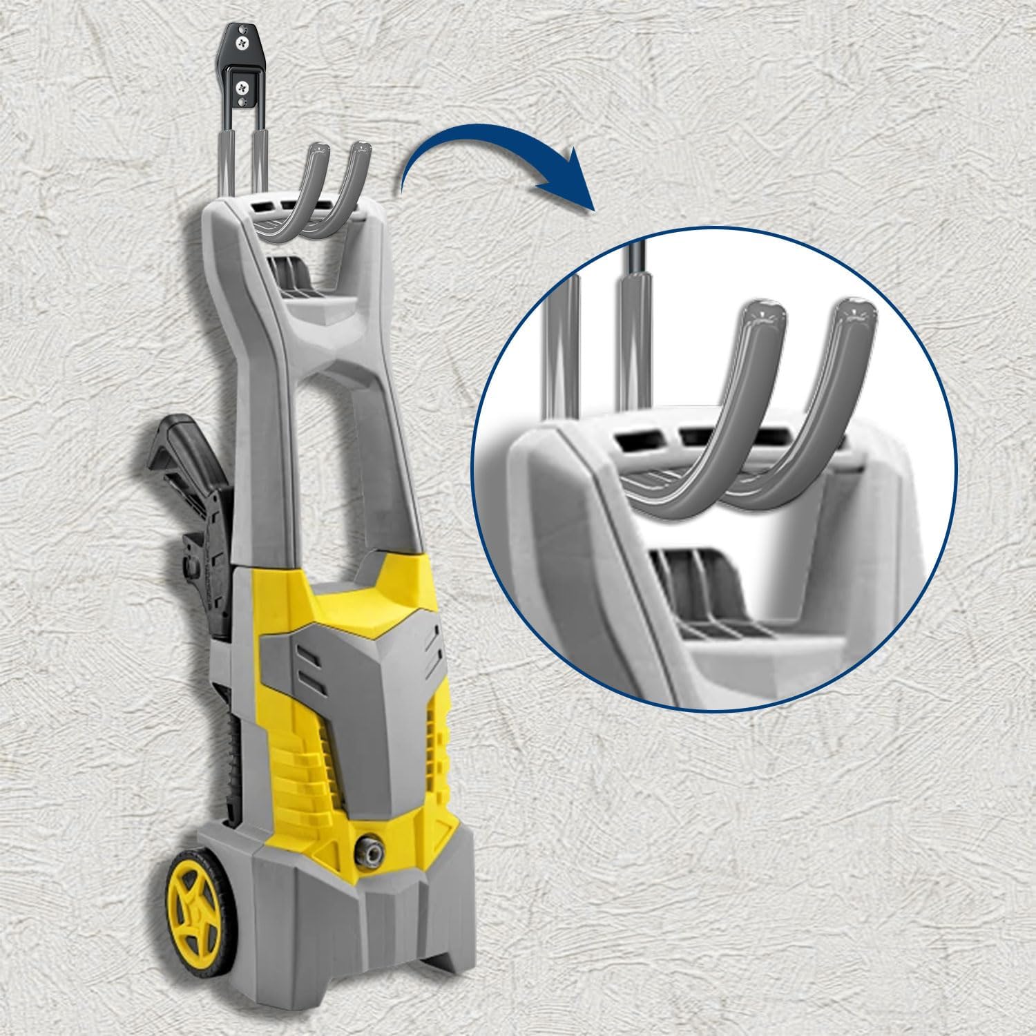 - Premium Quality Hose Hook: Our wall mount hose holder, featuring 3 reinforced welding spots, boasts a robust solid steel body that ensures exceptional sturdiness and durability. The garden hose hook’s dual arm design can securely hold heavy yard tools, supporting up to 70 lbs. Keep your hoses off the ground and free from tangles, crimps, and kinks with our garden hose hangers for outside