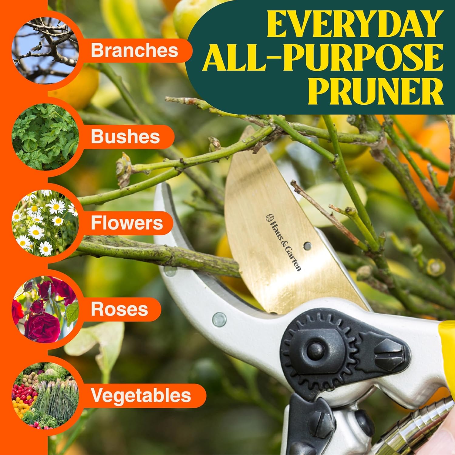 Haus & Garten ClassicPRO 8.5" Premium Titanium Bypass Garden Shears - Use as Pruners, Pruning Shears for Gardening, Hand Pruners, Handheld Garden Clippers Scissors Tool