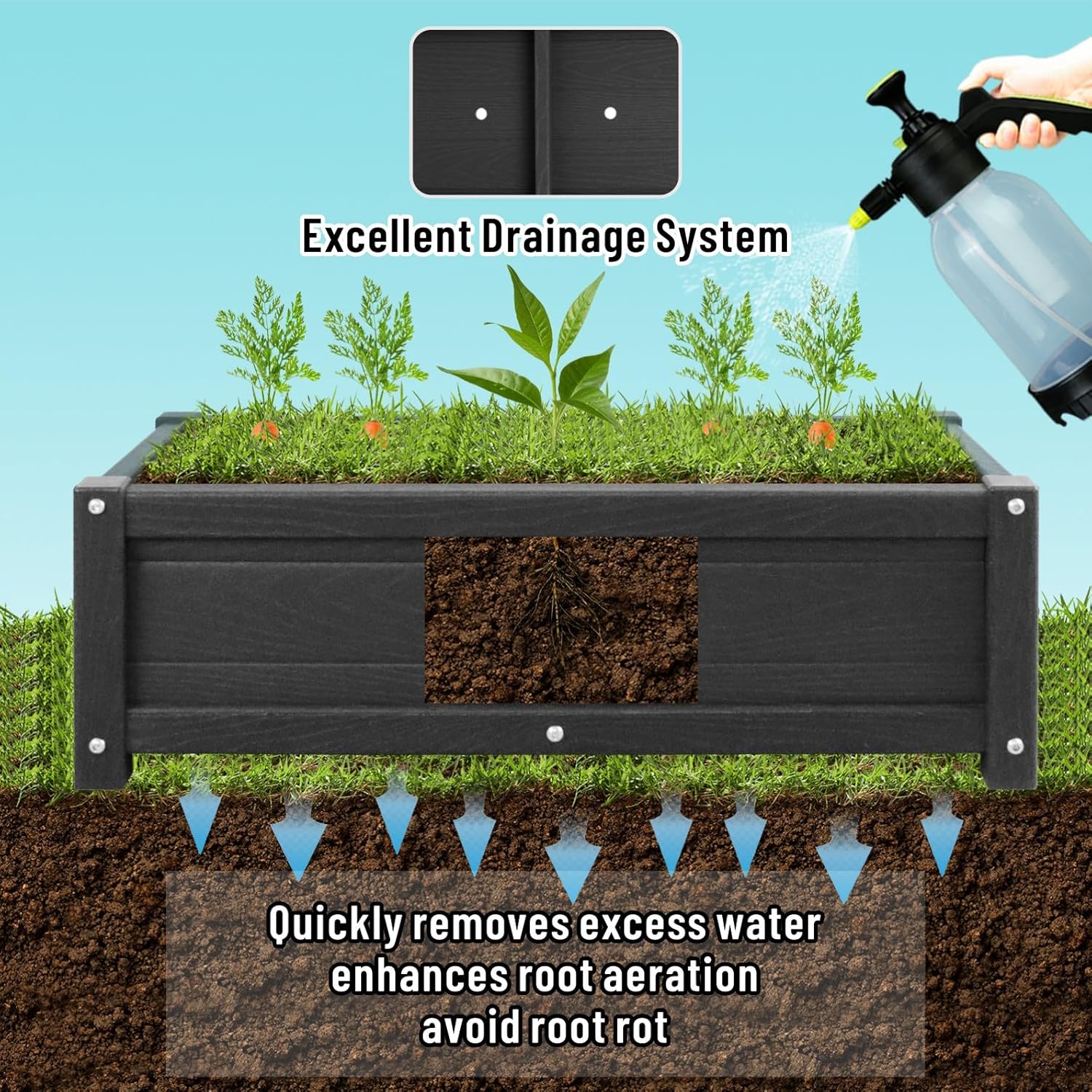 - Safety:Raised planter box outdoor made from HDPE,with no water or oil-based coatings, ensuring that your fruits, vegetables, plants, and herbs grow safely