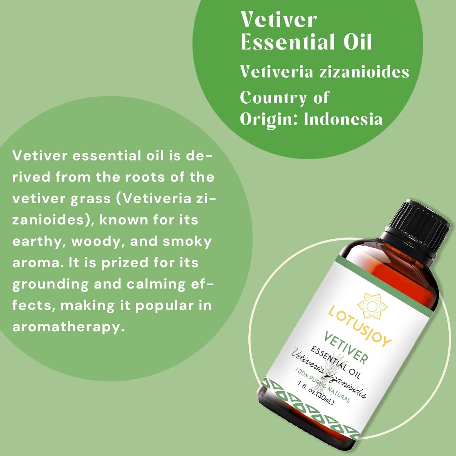 - Pure and Natural: Vetiver essential oil is 100% pure, natural, and undiluted, extracted from the roots of the vetiver plant.