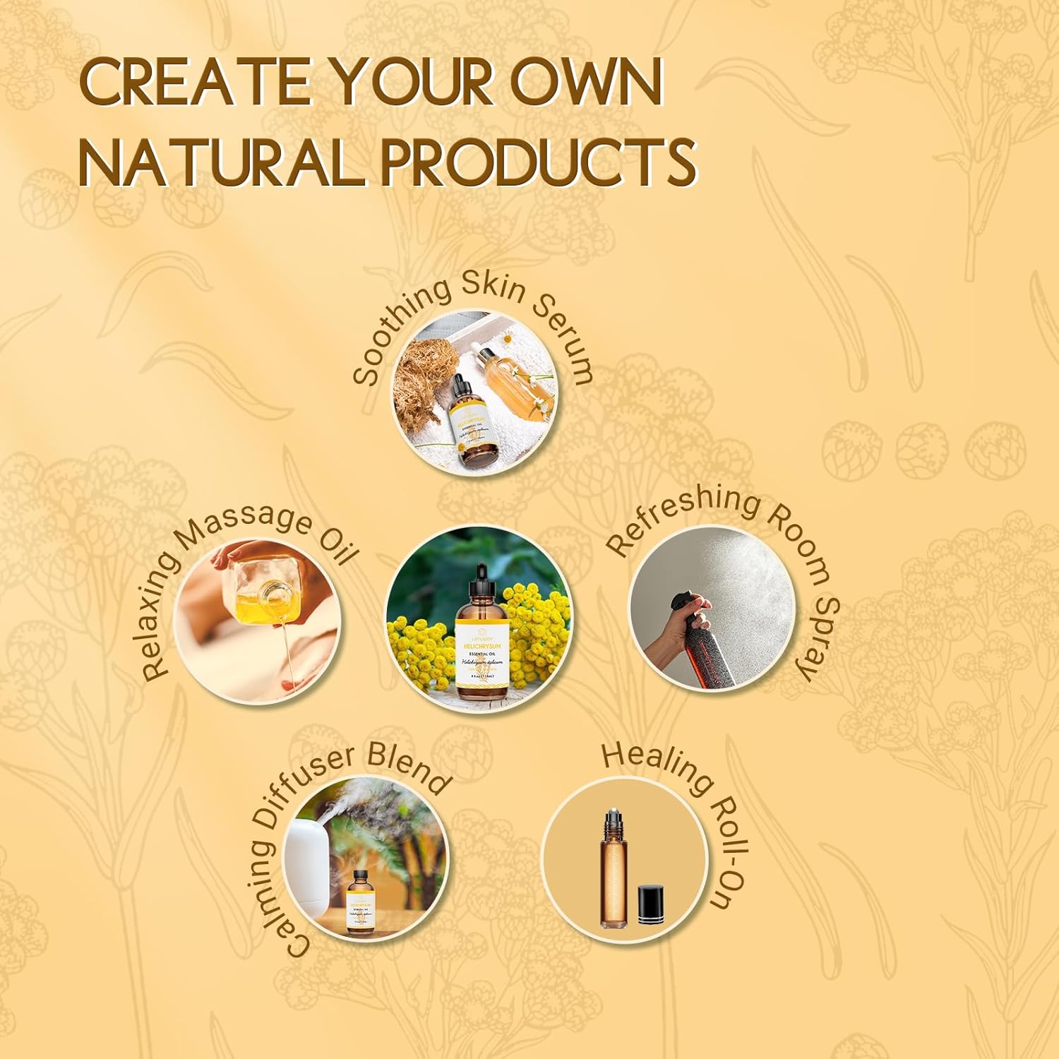 - Helichrysum Essential Oil for Skin: This natural skin care essential oil is perfect for those seeking a versatile, gentle solution to common skin concerns