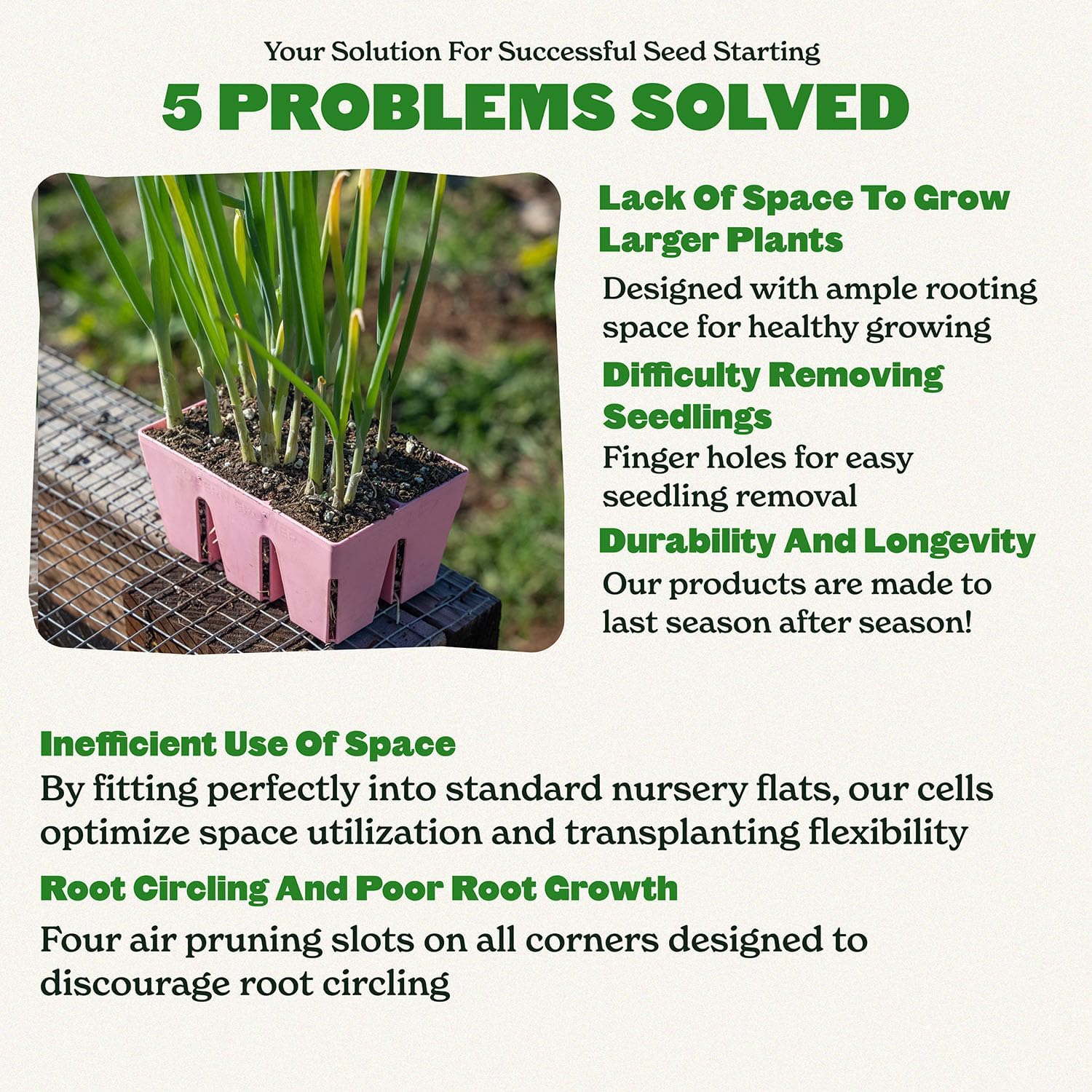 - Unbreakable & Eco-Friendly – 100% Recycled Plastic: Made from 100% recycled, UV-resistant plastic, our 6-cell trays (6-pack) are built for lifetime use. Each cell measures L 1 9/16" x W 1 9/16" x H 2 1/4", ensuring strong, reusable, and sustainable seed-starting.